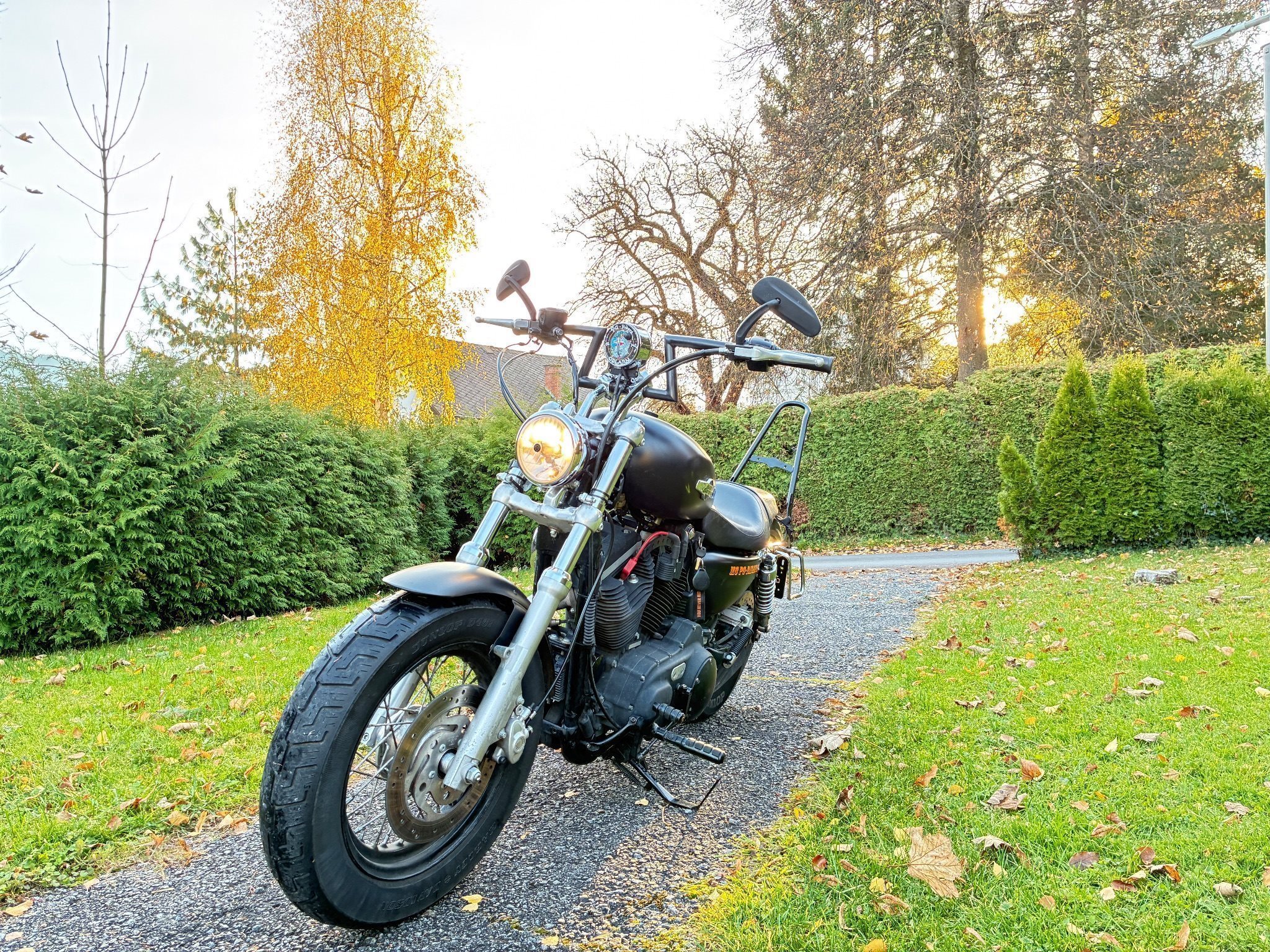 - Verbaut ist ein sportlicher Z-Lenker, den Mini-Ape-Lenker gibt es dazu.