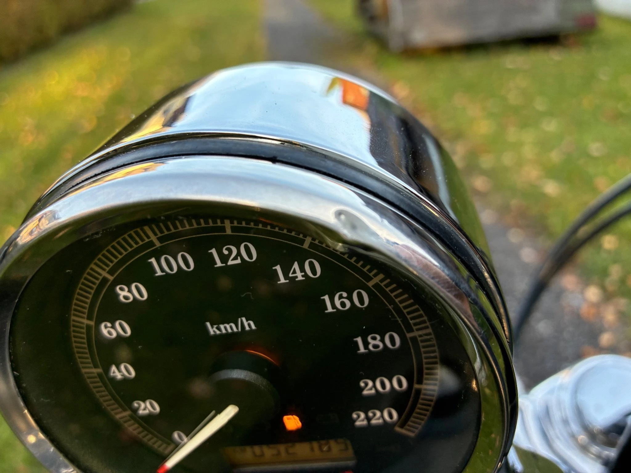 - Es gibt eine Delle am Auspuff-Cover (mit Schellen montiertes Schutzblech) und eine am Tacho, wie auf den Bildern zu sehen