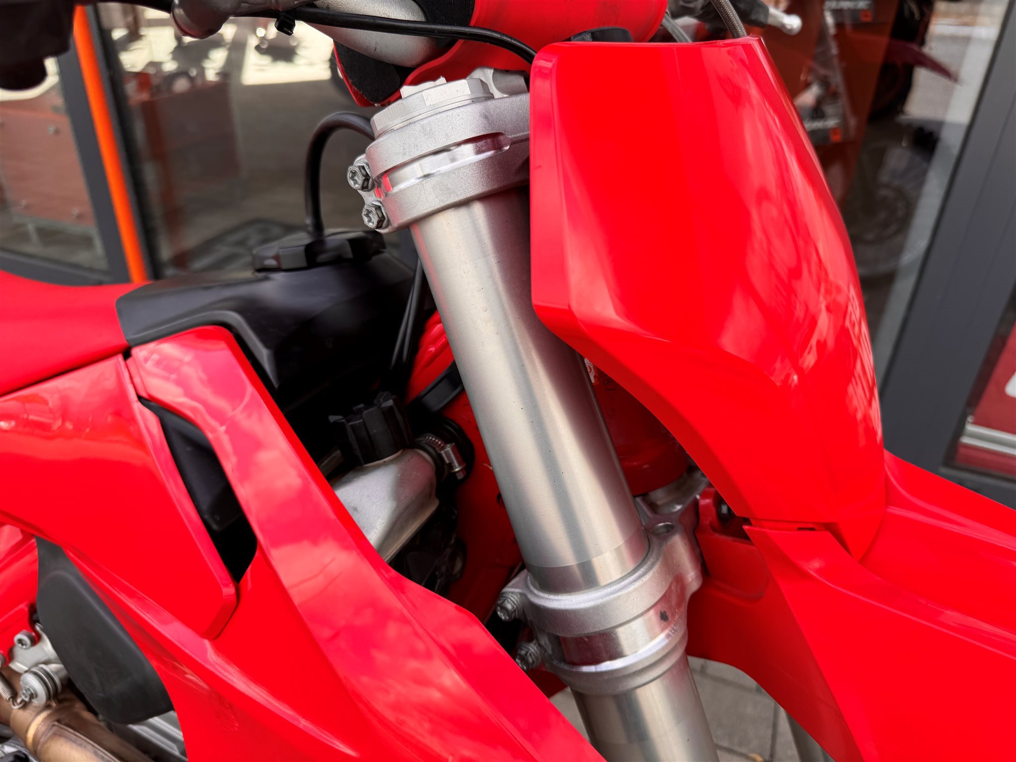 Technisch ist die GasGas ebenfalls in einem sehr gutem Zustand. Bei 81h wurde der ein großes Motorservice durchgeführt (Kolbel, Pleuel, Hauptlager, Steuerkette und Spanner). Wir haben nun im Zuge des aufbereiten einen Ölwechsel und Ventilkontrolle durchgeführt. Fahrwerk ist nahezu unbenutzt da hier andere Komponenten verbaut waren.