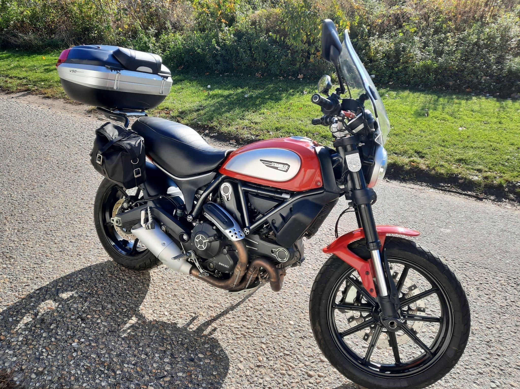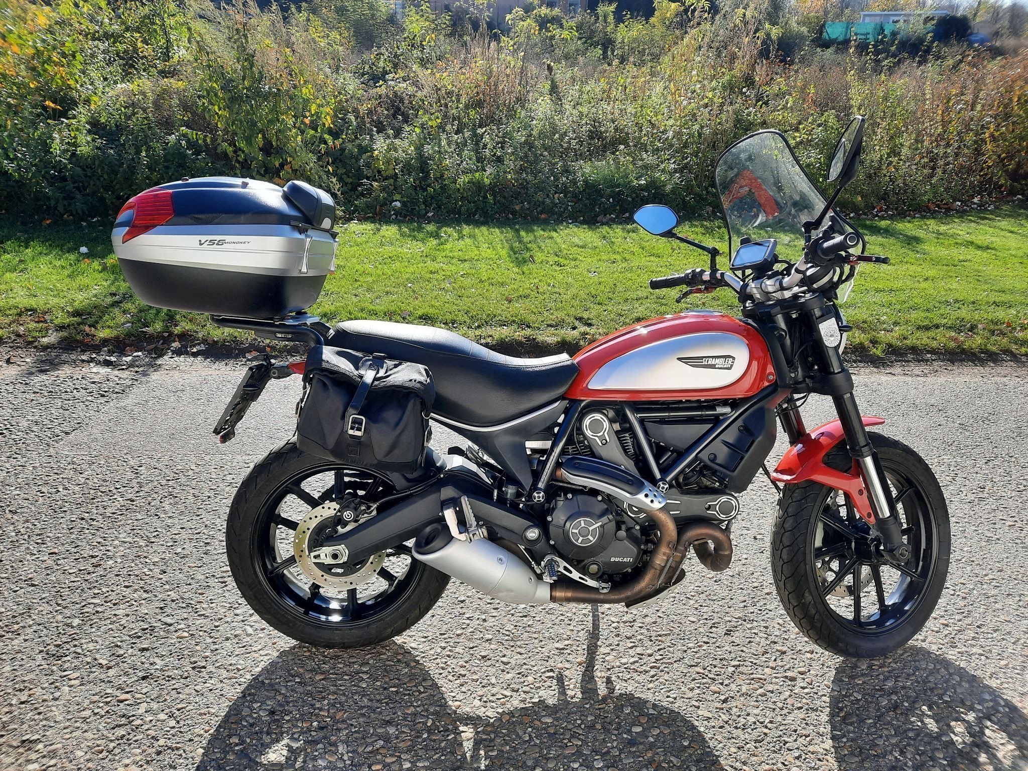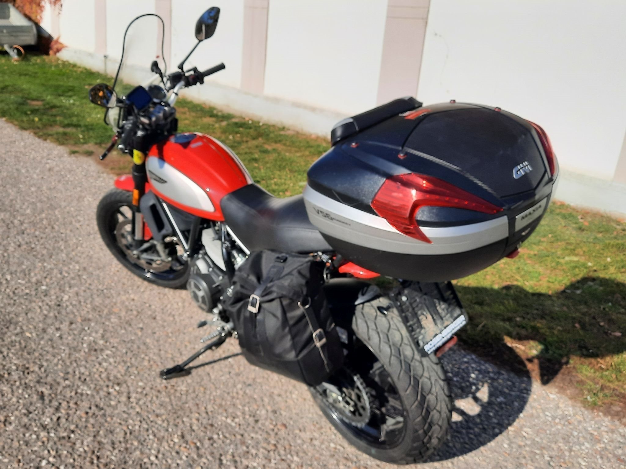 Wunderschöne Scrambler mit Extras wie Topcase, Satteltaschen, Navigations System, Windschild, Wegklappbare Brems- und Kupplungshebel