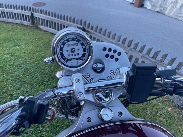 Der Cruiser ist ein ausgesprochenes Liebhaberfahrzeug, mit fein dosierbaren Motor, eine hochwertige Verarbeitung und recht guten Bremsen. Unfallfrei, Motorschutzbügel, Seitenkoffer aus Leder, und die Fahrersissybar,