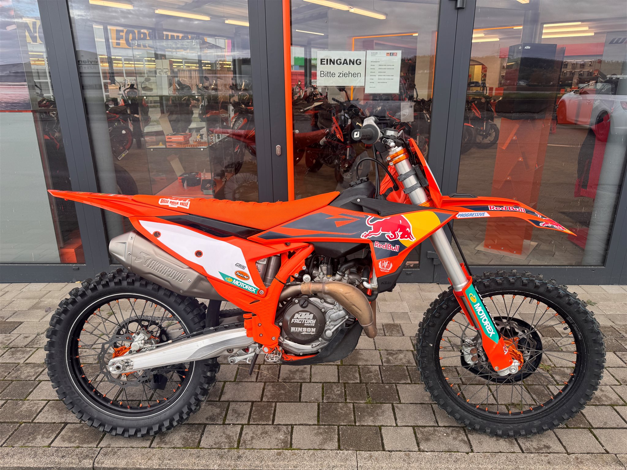 Zum Verkauf steht eine 450 SX-F Factory Edition Modell 2025 mit 46h aus Erstbesitz. Wie auf den Bildern zu sehen ist das Bike optisch in einem sehr gutem und gepflegtem Zustand.