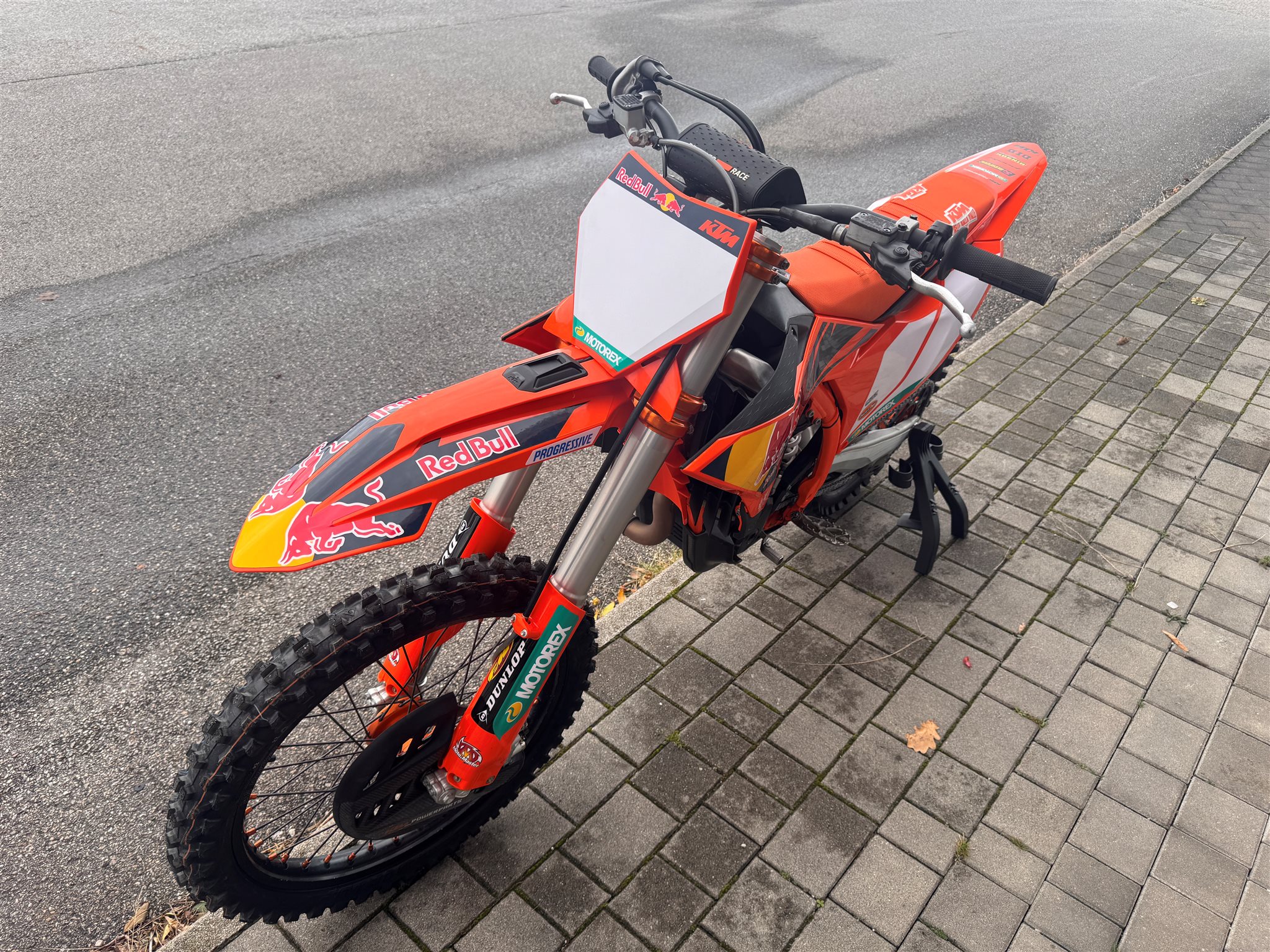 Technisch ist die Factory ebenfalls in sehr gutem Zustand. Das Bike stammt aus unserem Racing Team und wurde daher immer regelmäßig gewartet. Gabelbrücke, Gabel, Federbein und Felgen sind neuwertig da wir hier andere Komponenten in Verwendung hatten.