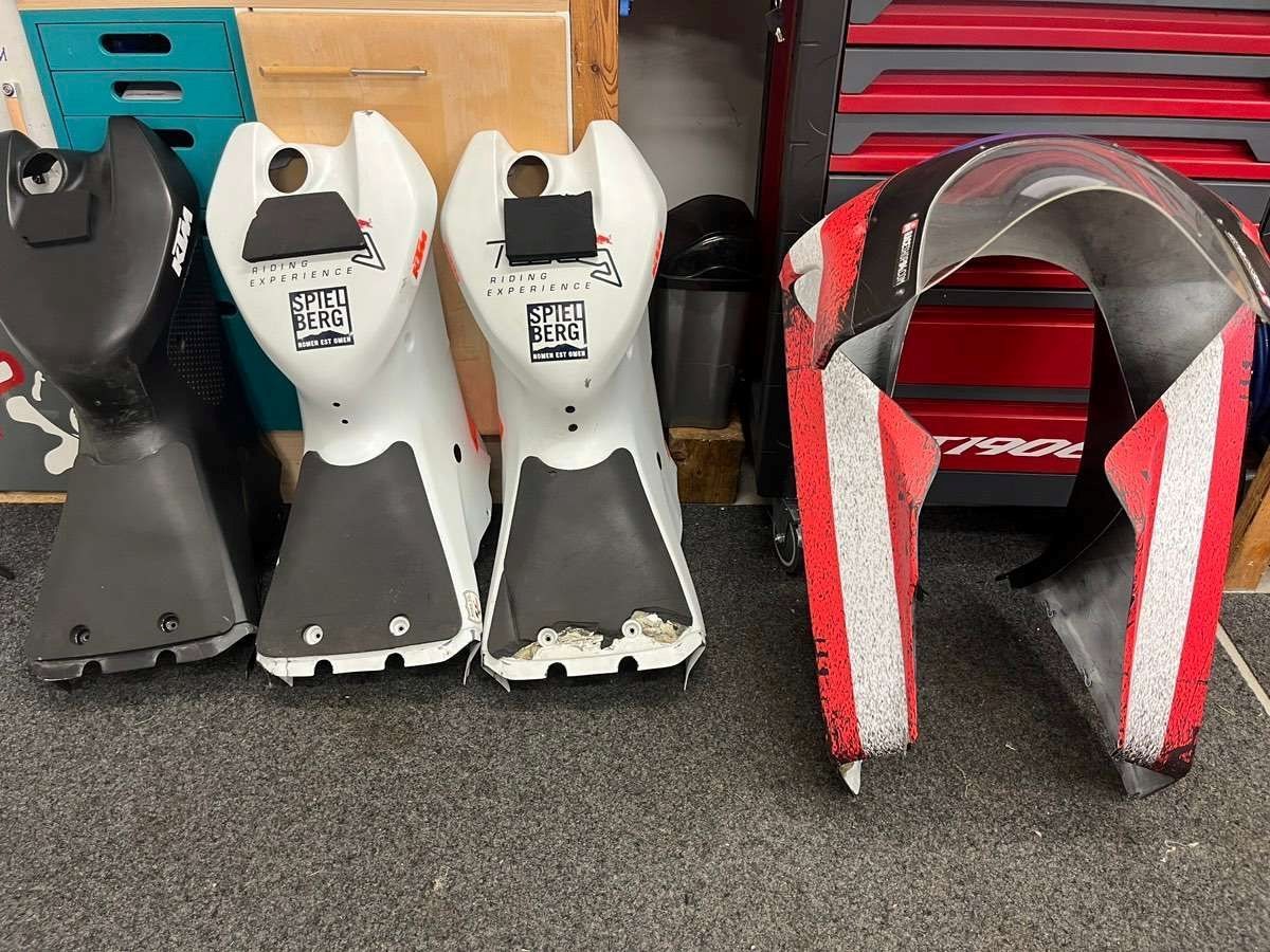 Motorradheber vorne und hinten sind ebenso dabei. Bei Bedarf kann ich einen Satz digitaler Reifenwärmer dazugeben.