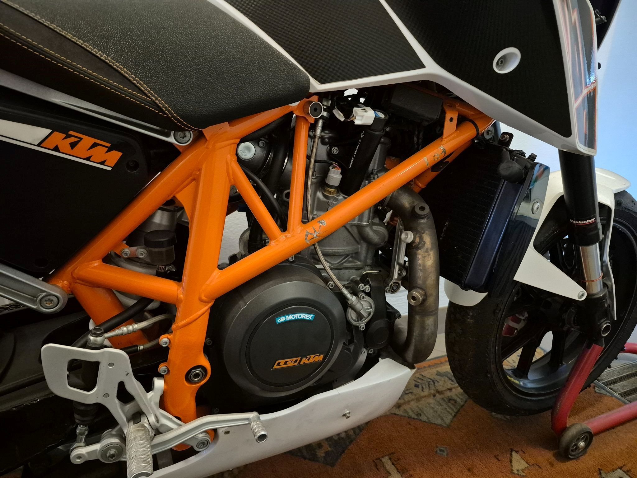 Umbausatz Frauenschuh auf 790ccm ca. 85-88ps 91Nm, Zylinderkopf original, Nockenwelle powerparts, Kurbelwelle original, Ölkühler, schwinge hinten für 180 Reifen umgebaut mit Felgen von 250gp Mika Kallio, Gabel und Federbein Haslacher, Gabelbrücke powerparts. Mit viel Zubehör wie verschiedene Übersetzungen, Regenreifen mit Felgen, verschiedene Ersatzteile..........