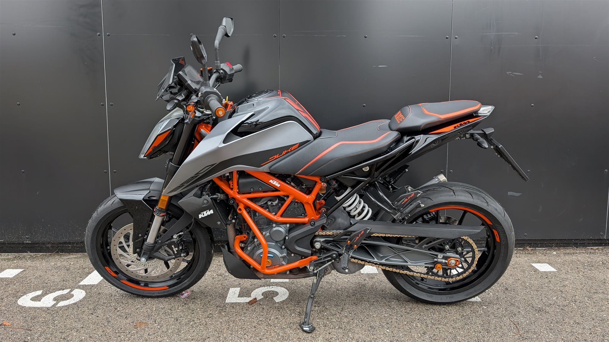 Zubehör: Quickshifter+, RokBagoros-Kurzheck, Sitze mit Sonderbezug, Fahrersitz mit Geleinlage, Sturzbügel orange, Brems- & Kupplungshebel orange MG-Biketec, Flyscreen getötn, Tankpad,Ständerauflage, PP-Bremsflüssigkeitsbehälterdeckel vo. & hi., Displayschutzfolie.