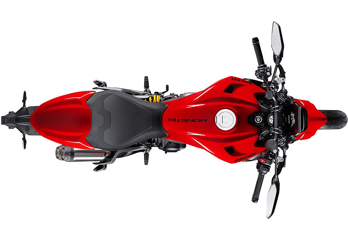 Die Monster präsentiert sich in ihrer fünften Generation mit überarbeitetem Design, neuem V2-Twin-Motor und modernster elektronischer Ausstattung. Sie steht für die kontinuierliche Weiterentwicklung eines unverwechselbaren Charakters einer Legende, die seit über drei Jahrzehnten Generationen von Motorradbegeisterten inspiriert.