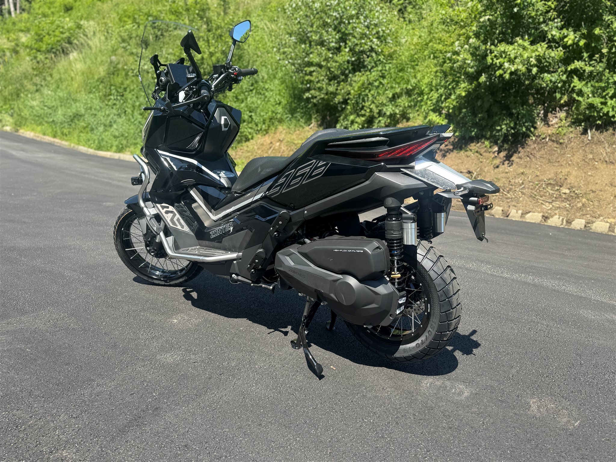 Zusätzliche LED-Leuchten und ein Seitenschutz, der für die härtesten Stöße geeignet ist, gehören beim 368G zur Standardausstattung. Dank dieser Details bestätigt dieser Roller seinen puren Adventure-Stil.