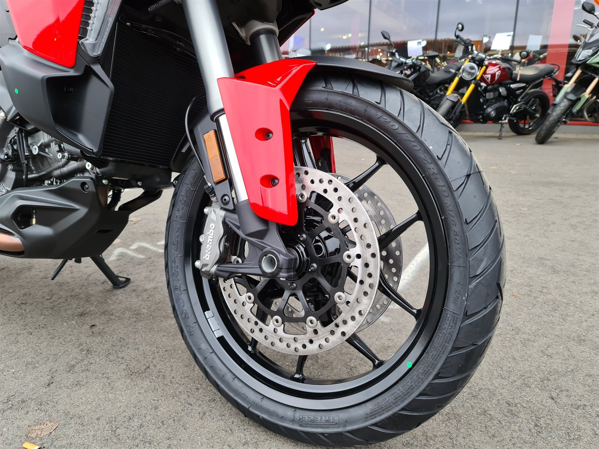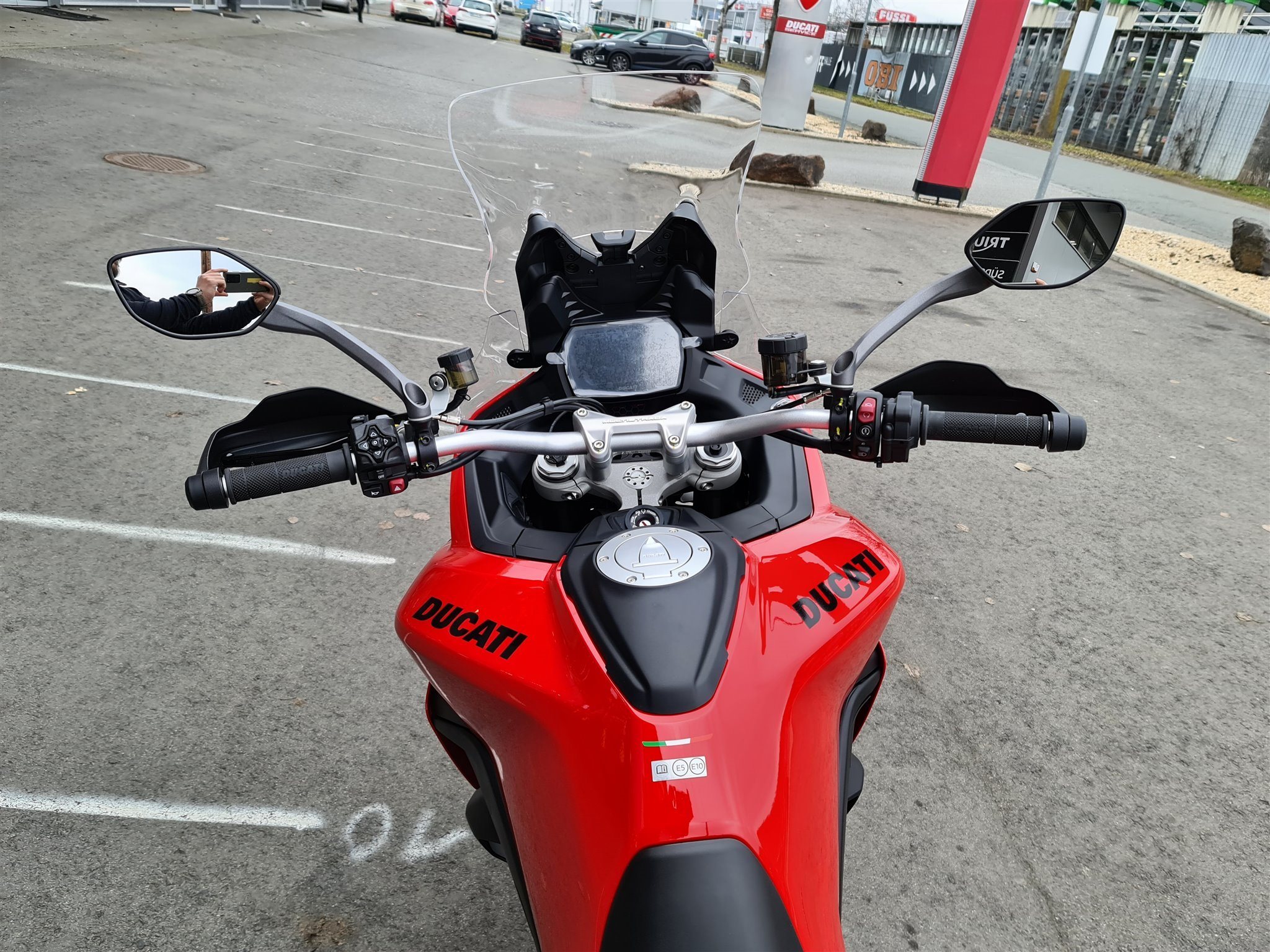 Ducati Multistrada V2S Der neue Motor verzichtet auf die sonst für Ducati typische Desmodromik, sondern hat stattdessen eine variable Ventilsteuerung verbaut. Das Gewicht des Modells kommt ohne Sprit auf 202 kg fahrbereite Kilogramm beim S Modell. Die Aerodynamik wurde verbessert, der Windschild lässt sich nun einhändig in der Höhe verstellen, die neuen LED-Lichtelemente bieten ein Tagfahrlicht und im Cockpit prangt das neue 5-Zoll TFT-Display.