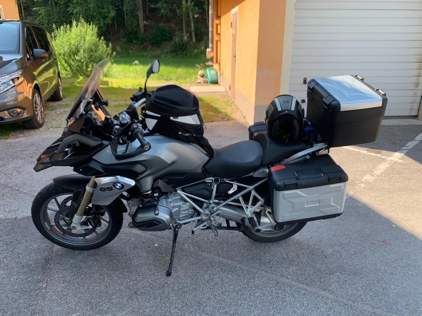 Thundergray-metallic, Komfort Paket, Dynamic Paket 2,Auspuffanlage verchromt, Diebstahlwarnanlage,schöner gebrauchter Zustand, Garagengepflegt, Navi Vorbereitung, incl. original BMW Kofferset, VB: 8500
