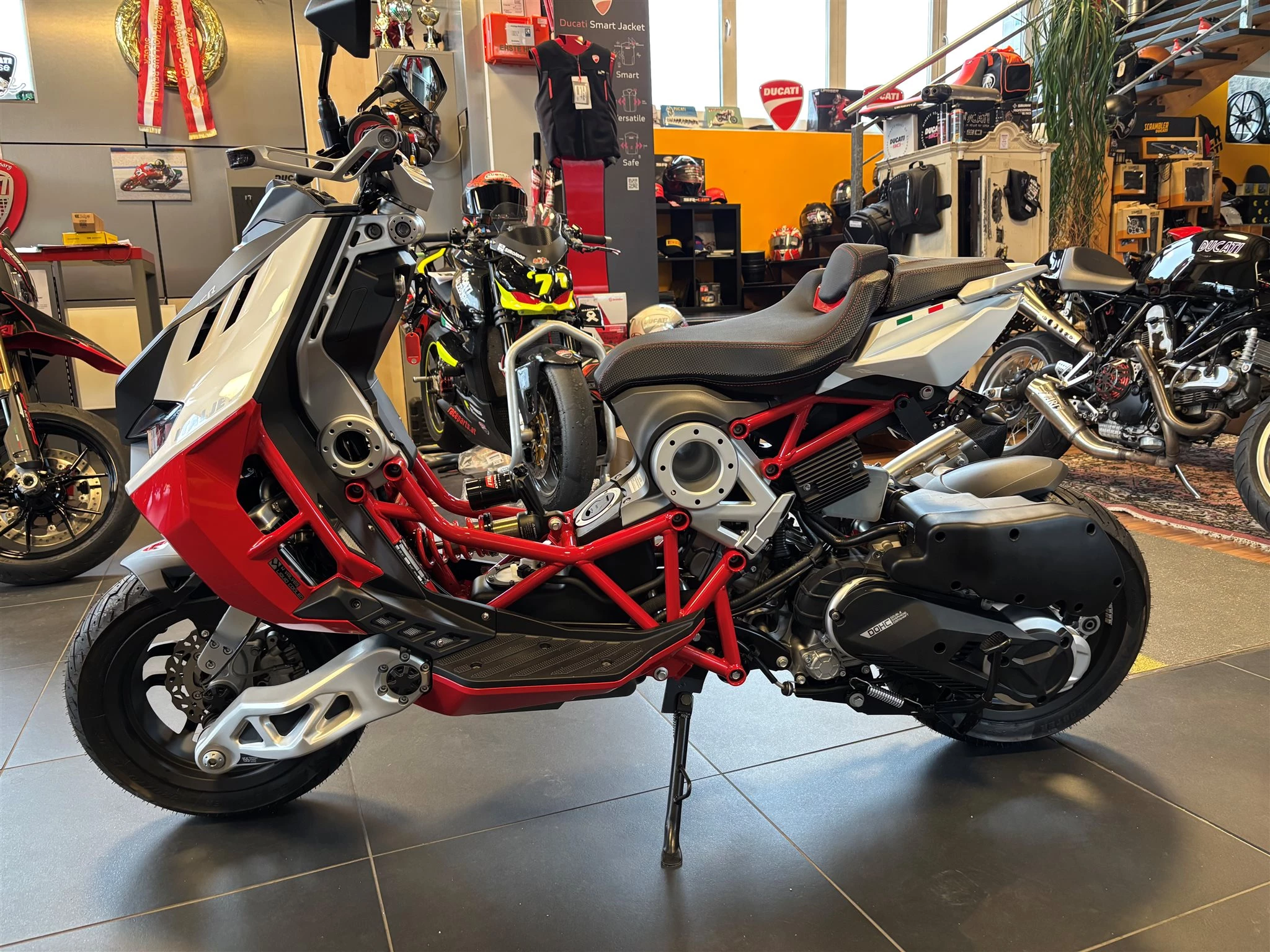 Umbau: Malossi Racekupplung, Malossi Sportauspuff mit E- Nummer, Sitenständer, Kennzeichenhalter oben mit LED Blinker. Originalteile vorhanden. Neupreis 2024 inkl. Umbau 9.800,-- Nettoverkauf möglich um 6.500,--