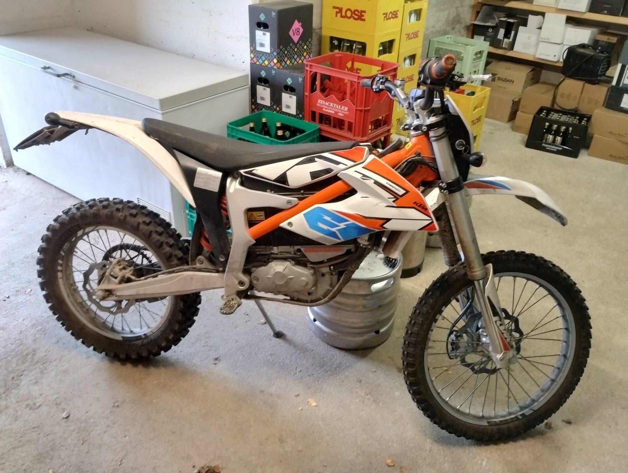 Es ist eine Elektromotocross die ich aufgrund von Zeitmangel nicht mehr nutze und daher verkaufen will. Der Collaudo (TÜV) ist neu zu machen und einige Schrammen usw. hat sie abbekommen, funktioniert sonst vom Motor her aber immer einwandfrei.