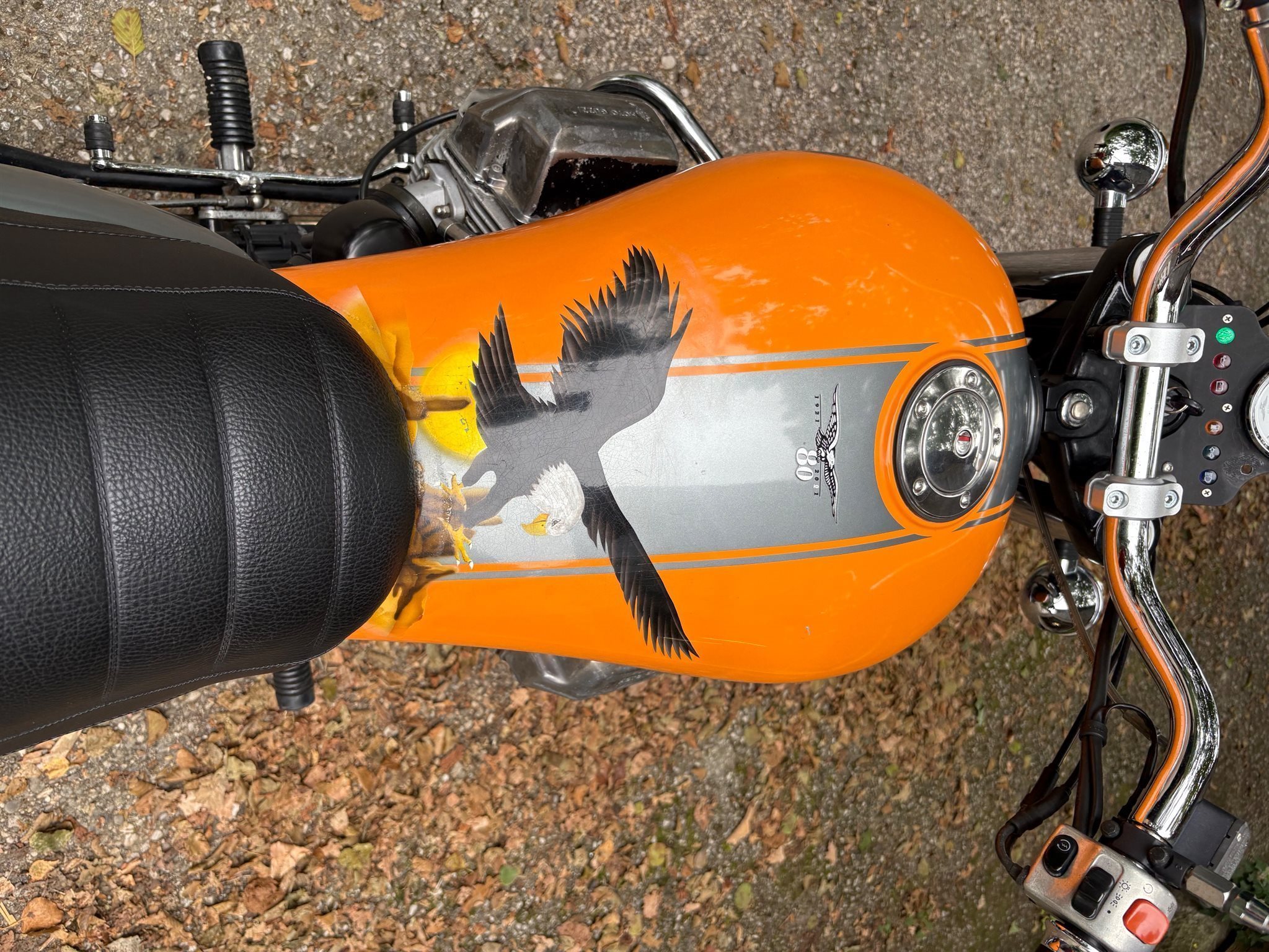 Verkaufe diese Moto Guzzi California Stone. Guter Zustand, neue Bremsklötze hinten und vorne, Öl wurde gewechselt, Bremsflüssigkeit getauscht, neue Batterie, neue Zündkerzen, neuer Luftfilter. "Pickel" derzeit abgelaufen, kann aber noch gemacht werden. Es sind etwas lautere Auspuffe montiert, Originalauspuff ist aber vorhanden. des Weiteren sind noch 2 Garnituren Sitze (Einzelsitze) mit dabei. Leider hat das Fahrzeug eine kleine Delle am Tank und der hintere Kotflügel ist leicht "eingeknickt", was aber nicht großartig auffällt. Eine Lenkererhöhung wurde angebracht, Originalhalter sind aber mit dabei.