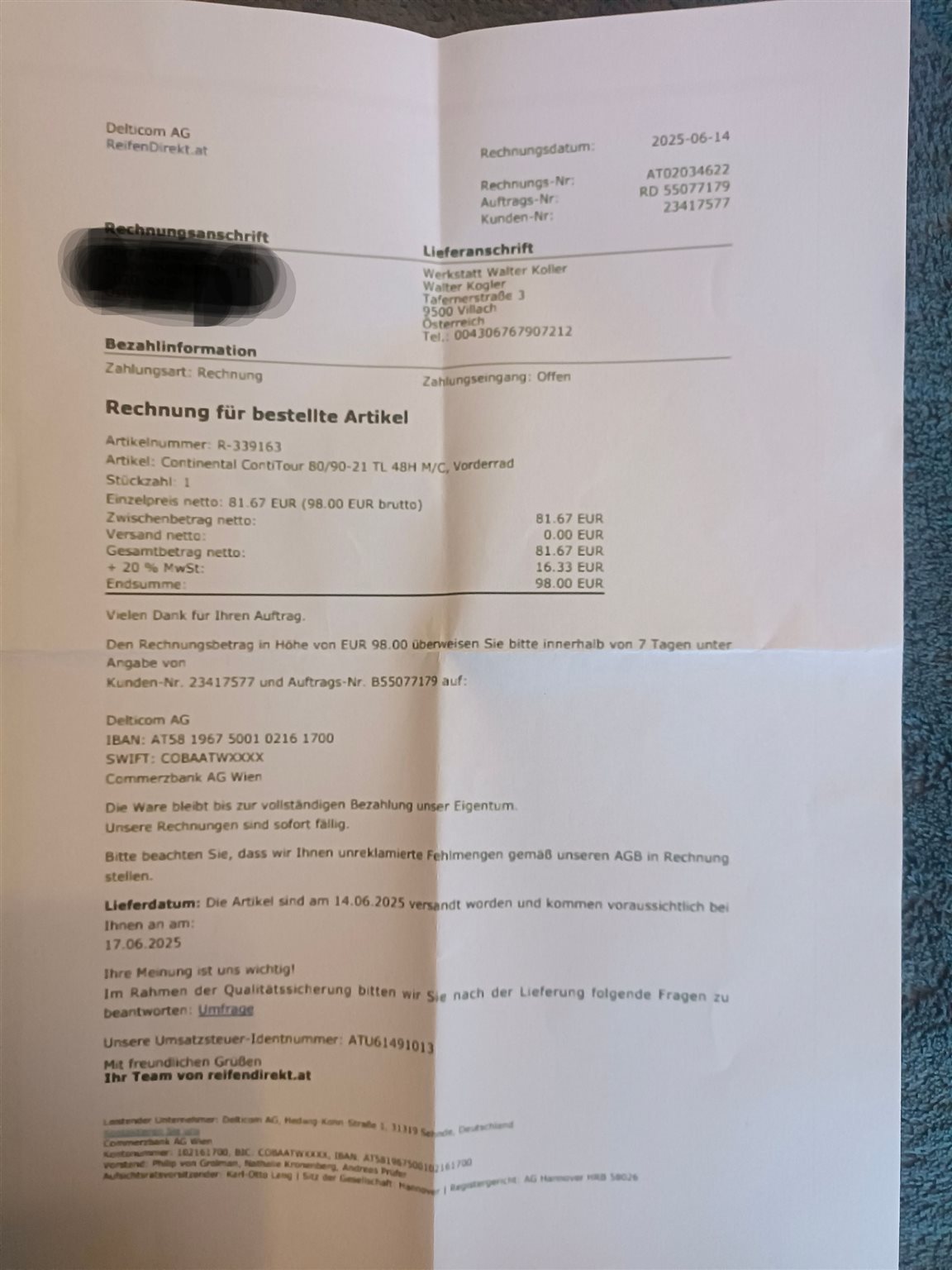 - Speditionslieferung aus dem Ausland