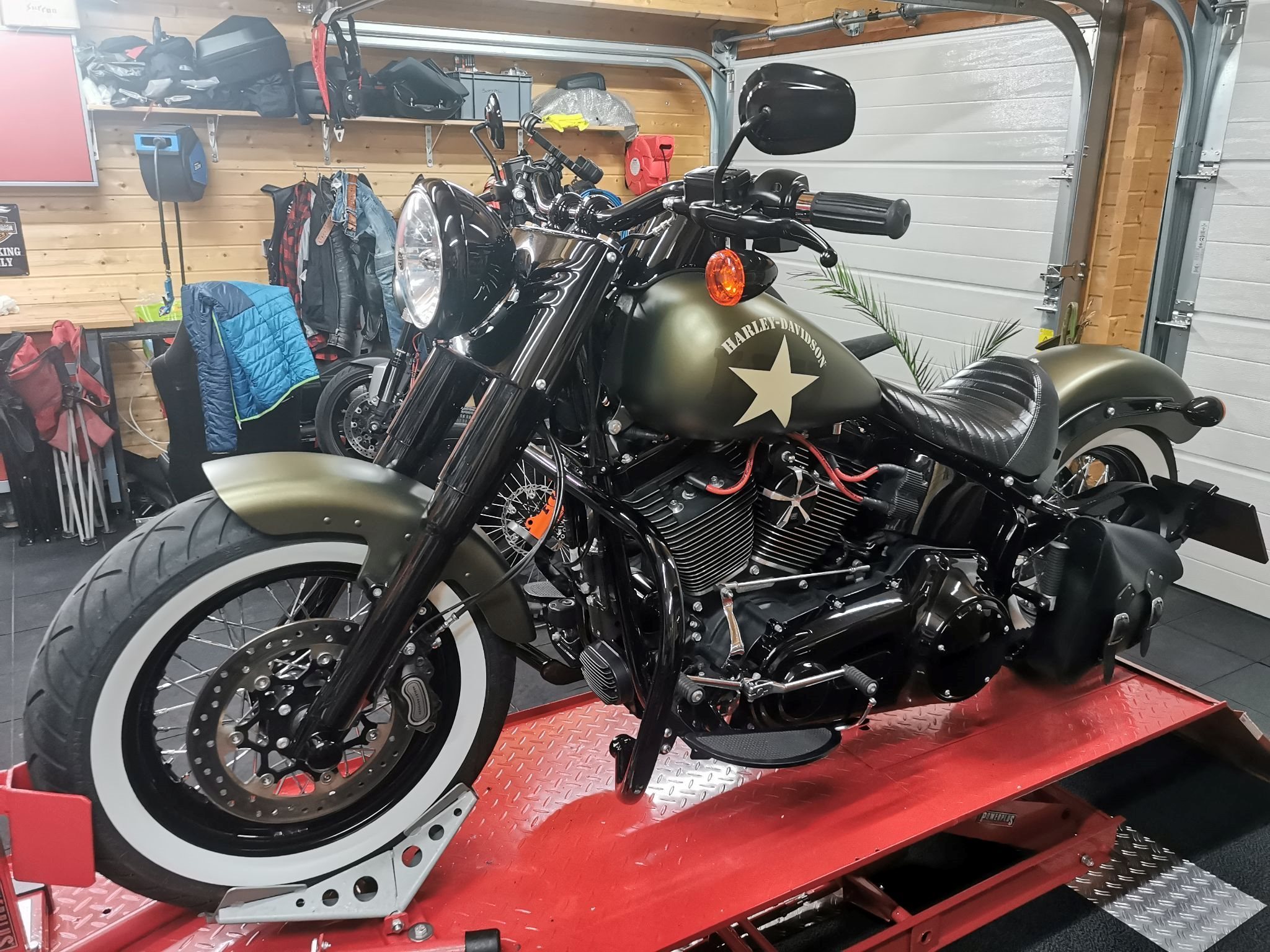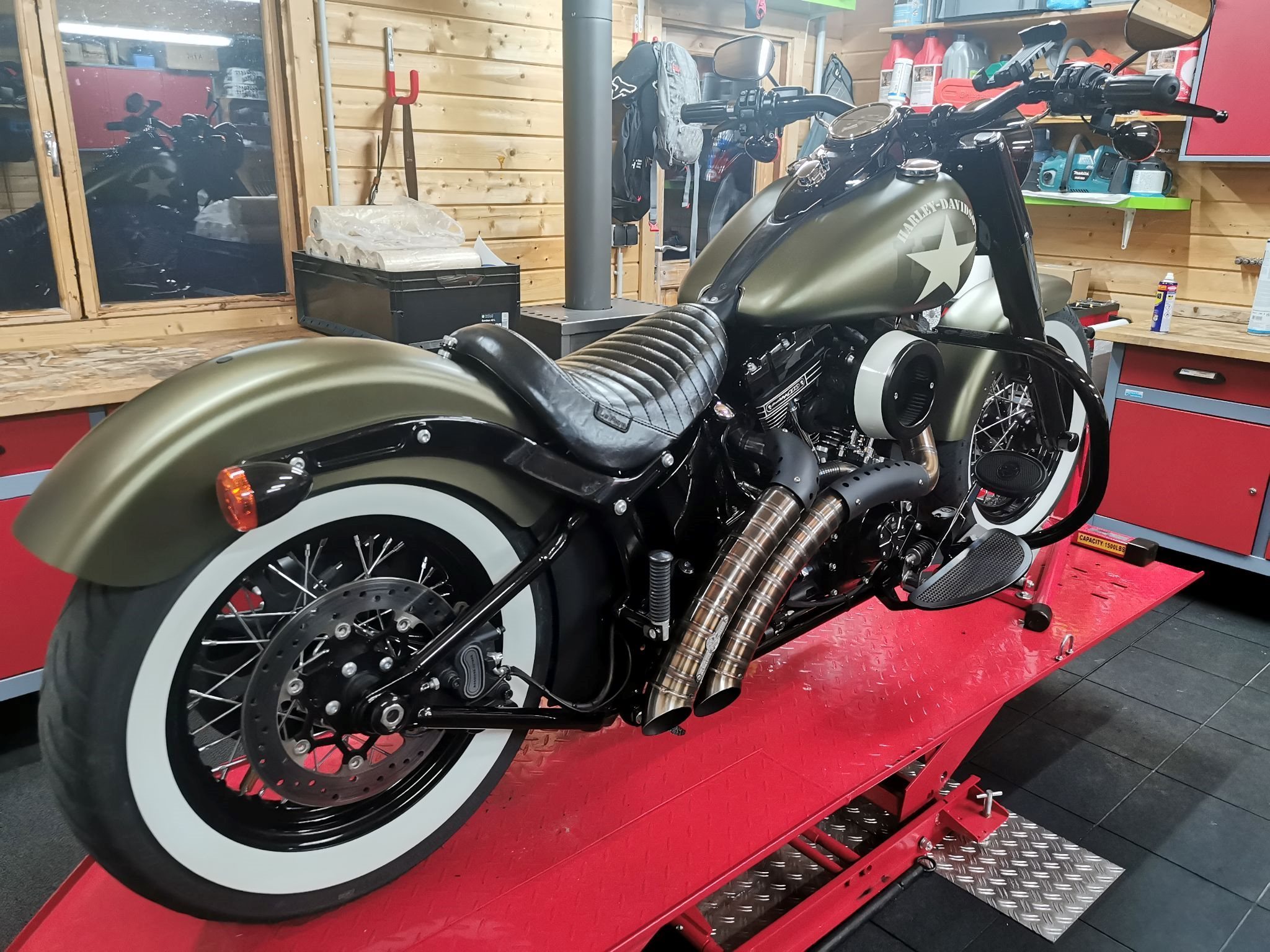 Umbau von Auspuff, Steuergerät und Luftfilter durch Fa. BSL in Linz. 120PS in dieser Konfi... geht mit dem 110er Motor Brutal gut. Zusätzlich wurden noch die hinteren unteren Federbeine bei der Fa BSL auf 1A Ware ersetzt. Lenker tief und breit ebenfalls eingetragen. Zubehör im Wert von über € 7.500,- verbaut bzw. inkludiert (alle Rechnungen vorhanden) Die ersten Garantie Services direkt beim HD Händler (4 Jahres Garantie damals) und jetzt direkt beim 2 Rad Mechaniker des Vertrauens (leider besser wie beim HD Händler!) Jedes Jahr alle Öle erneuert (mit Premium Öl der Fa PHI Oil) , trotz geringer Kilometerleistung!