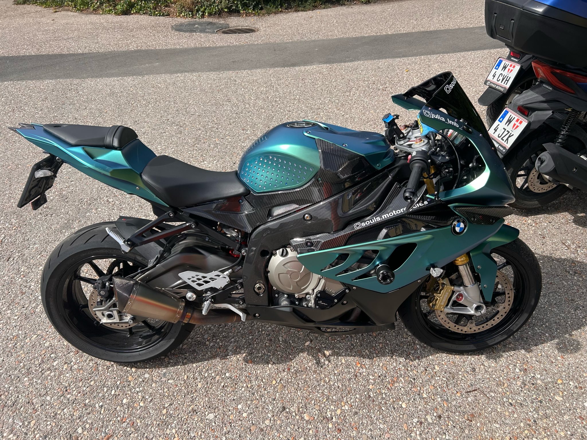 Es ist ein weißes windschild oben und die Spiegel wurden mir leider gestohlen.