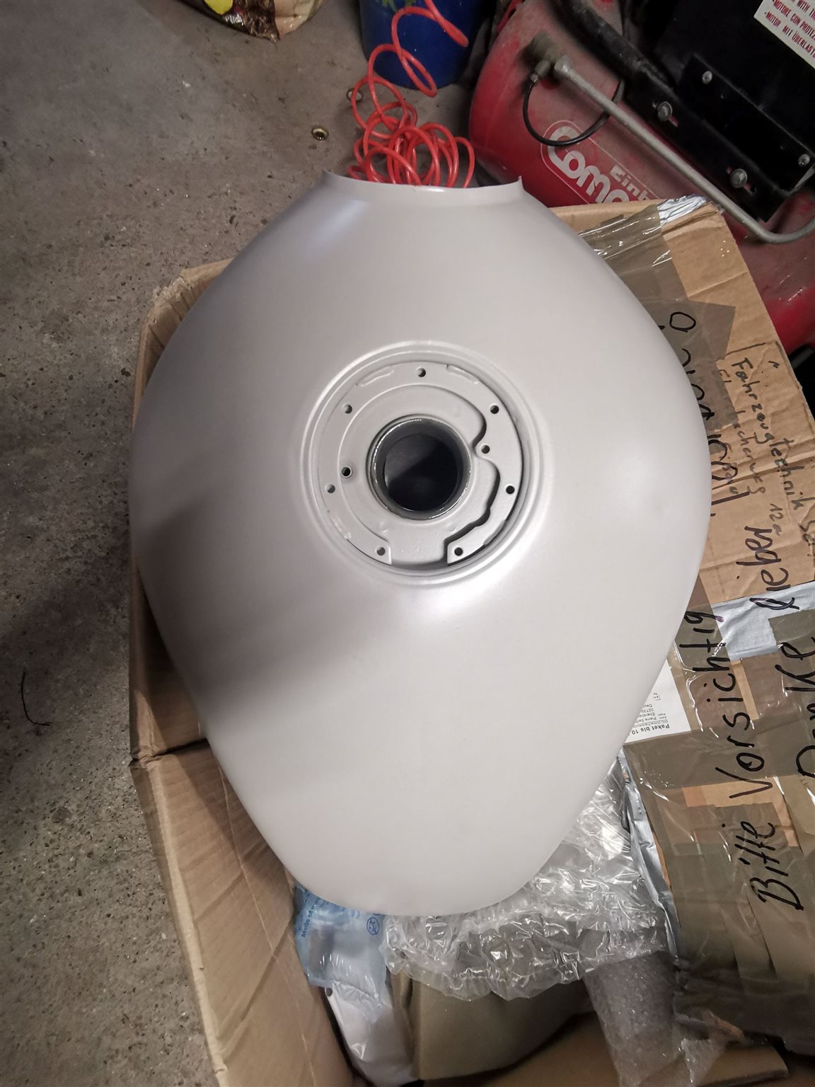 Neuer Tank wurde gekauft, vom Profi innen beschichtet. Außen allerdings nur Primer drauf.