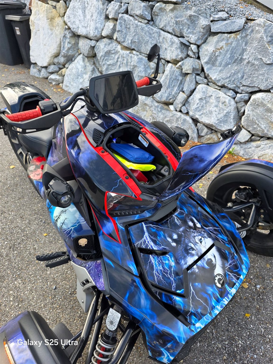 Verkaufe wegen Neuanschaffung meine geliebte Ryker Rally. Genaue Infos bitte auf der Herstellerseite nachlesen. Momentan ist ein Akrapovic verbaut. Originalauspuff und RLS  Auspuff (keine E NUmmer) wird mitgegeben. Die Sticker hab ich mir aus Amerika schicken lassen. Echter Hingucker auf unseren Strassen :) Inklusive Comfortsitz, Soziussitz und Soziusabdeckung. Outdoorabdeckung ebenfalls vorhanden.