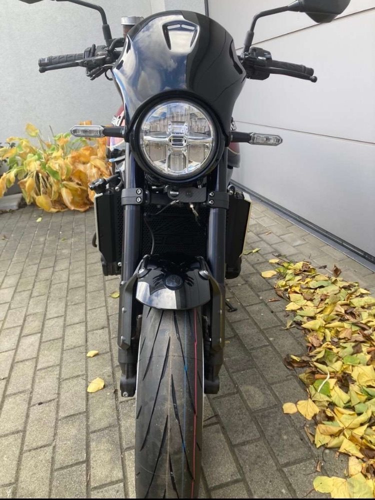 -Hupe hinterm Scheinwerfer verlegt und mit Echt-Carbon verkleidet