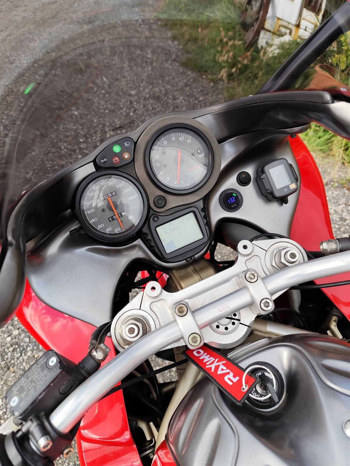Mit dabei sind die originalen Seitenkoffer inkl. Halterung und eine schrecklich laute Carbon-Abgasanlage (ohne Genehmigung).