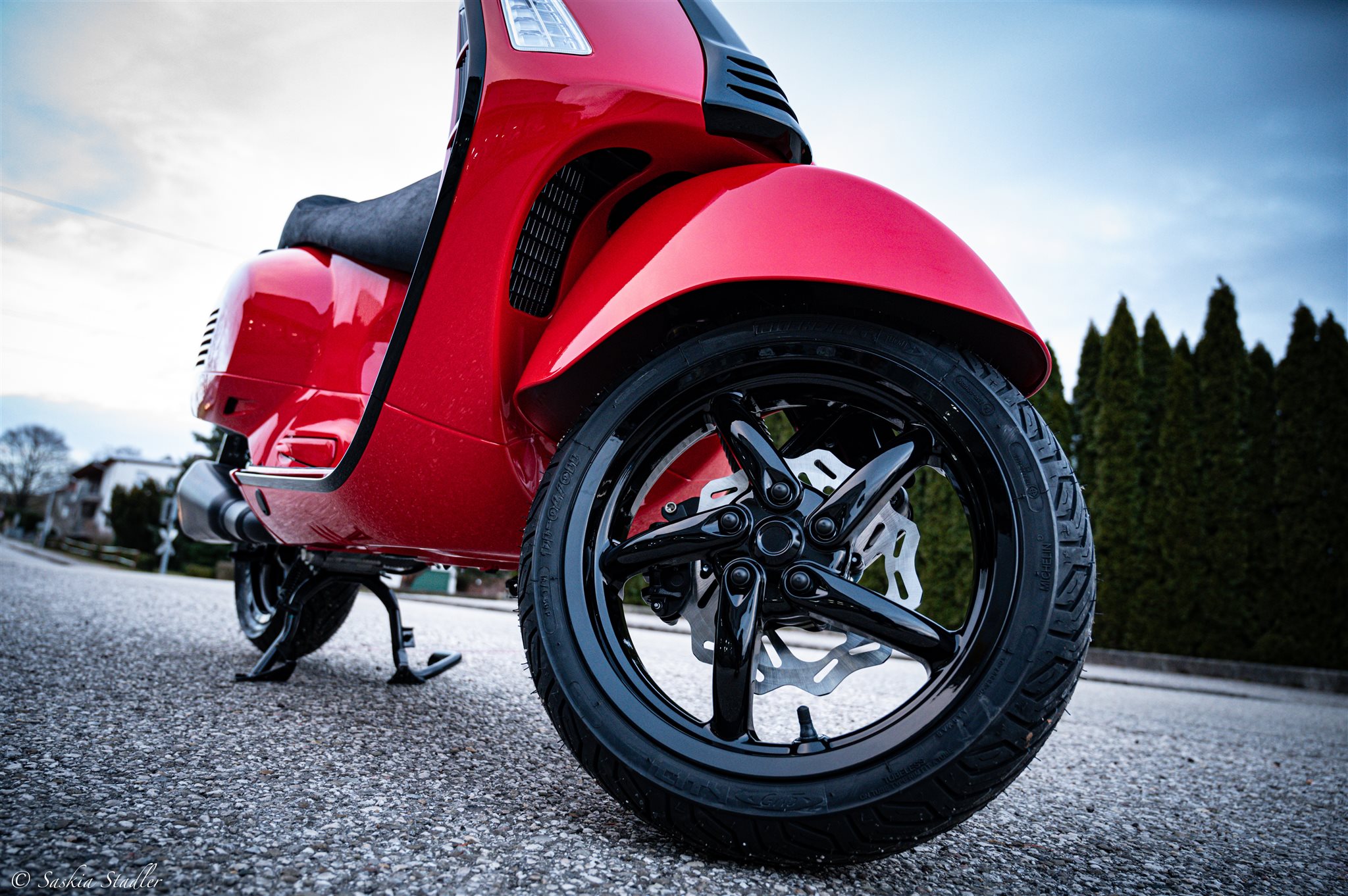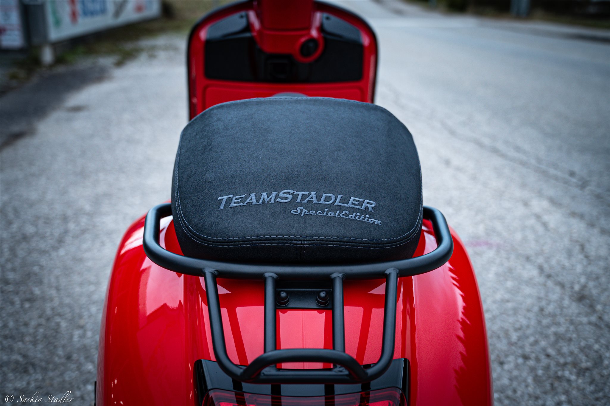 Ein rollendes Meisterwerk erhebt sich aus unserem Werkstattnebel: Billy, unsere Vespa GTS 300 RST 2024, ist nach intensiver Umgestaltung bereit, die Straßen zu dominieren. In einem fesselnden Rosso Coraggioso getaucht, trägt Billy nun Stolz seine einzigartige Identität. Der erste Blick fällt auf den strahlend roten Scheinwerfer, der den Weg in ein neues Abenteuer erhellt. Ein Blick auf das Cockpit offenbart einen tiefroten Tacho, der Geschwindigkeit und Stil perfekt vereint. Doch Billy ist mehr als nur eine Farbexplosion sie ist ein Tribut an die Detailverliebtheit. Jedes Chrom- und Silberelement wurde durch ein tiefes Schwarz ersetzt. Die 14-Zoll-Felgen, zuvor unauffällig, sind nun der Grundstein für einen imposanten Auftritt. Die markante Lenkerarmatur von Team Stadler in leidenschaftlichem Rot wird zum Herzschlag des Cockpits. Die Liebe zum Detail zeigt sich auch in der Klavierlack-Veredelung des Lufteinlassgitters und der schwarzen Gepäckfachabdeckung. Auf der Sitzbank thront stolz das Emblem von Team Stadler, das den Anspruch auf Perfektion unterstreicht. Der Blick nach unten offenbart eine Ölwanne mit Schauglas, die nicht nur funktional ist, sondern auch einen Einblick in die inneren Geheimnisse von Billy gewährt. Doch das ist noch nicht alles. Der Umbau von Billy ist eine umfassende Transformation. Die Schwinge, das Motorgehäuse, das Variogehäuse alles in tiefem Schwarz gehalten, um eine finstere Eleganz zu verleihen. Der Remus RS Sportauspuff verspricht nicht nur einen kraftvollen Sound, sondern auch zusätzliche Power auf der Straße. Das Fahrerlebnis wird weiter optimiert durch die 240mm Wave Bremsscheibe vorne, die Wave Bremsscheibe hinten, die schwarze Gabel und die schwarzen Stoßdämpfer. In Billy's neuem Look verschmelzen Ästhetik und Funktion zu einer kongenialen Einheit. Billy ist nicht nur eine Vespa, sie ist eine kühne Erklärung: ein Statement in Rot, Schwarz und Leidenschaft. Und vor allem dieser Umbau ist zu 100 % legal! Für jede Veränderung wurde eine Einzelgenehmigung eingeholt, um sicherzustellen, dass Billy alle gesetzlichen Anforderungen erfüllt und die Straßen sicher erobern kann.