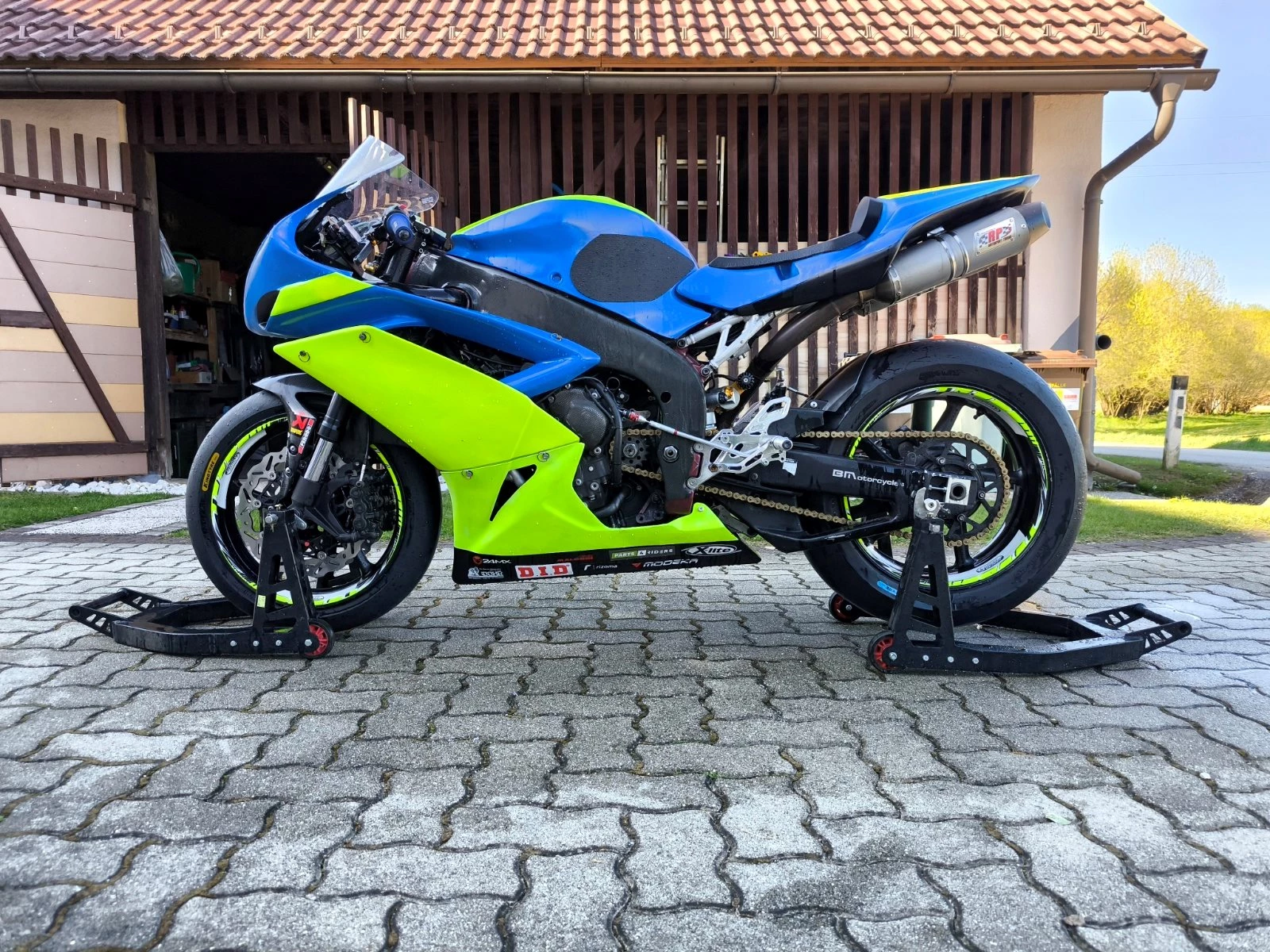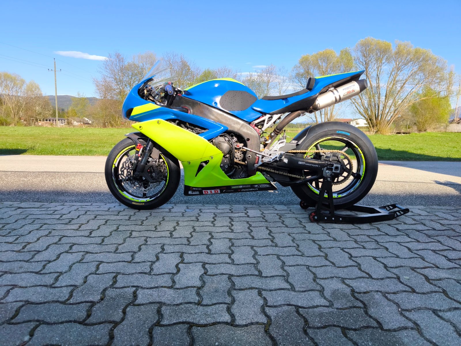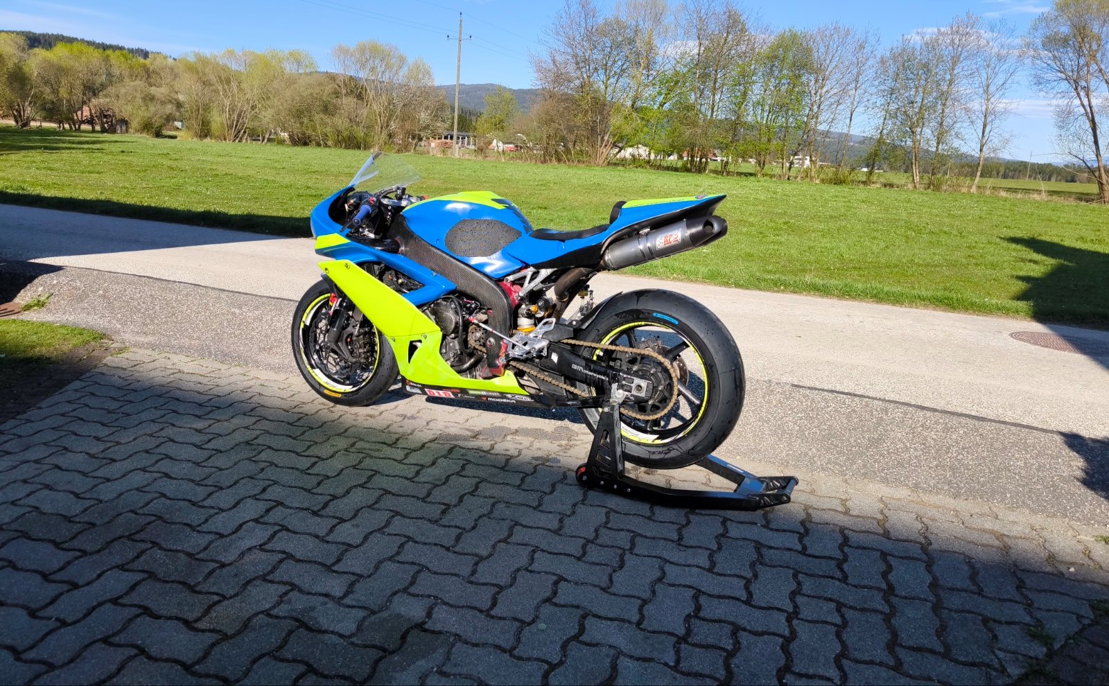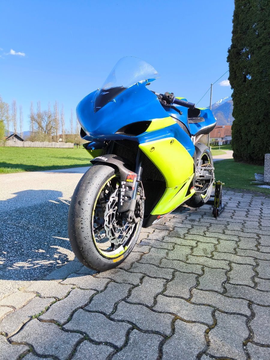 Verbaut ist ein yec kit kabelbaum inkl Steuergerät abgestimmt auf dem Prüfstand. Rp Komplettanlage, Schaltautomat mit Blipper(translogic) Dynojet pushpull Sensor (Umkehrschaltung), Automatische Aufwärmfunktion per Knopfdruck. Irc Traktionskontrolle mit anti Wheelie Funktion sowie ein pitlimitter.Für perfekte Kühlung ist ein Zusatzkühler verbaut.Fahrwerktechnisch ist vorne eine rn22 Öhlins Gabel und hinten ein Öhlins ttx verbaut. Vorne ist auch eine Brembo Bremspumpe verbaut. Die Verkleidung ist nicht die schönste aber für die Rennstrecke voll okay. Gebe 2 Carbon Seitenverkleidungen und eine hintere Felge dazu.