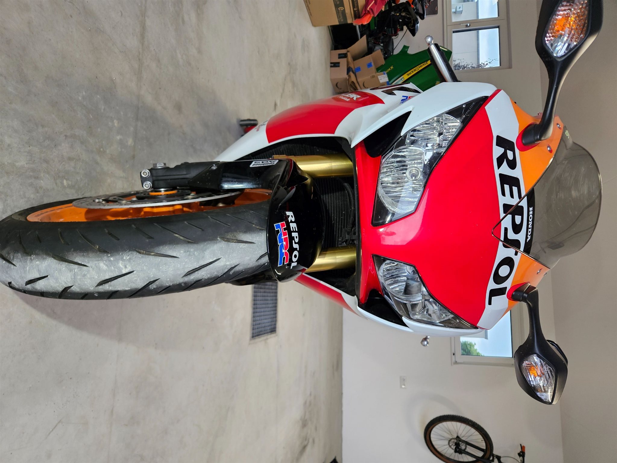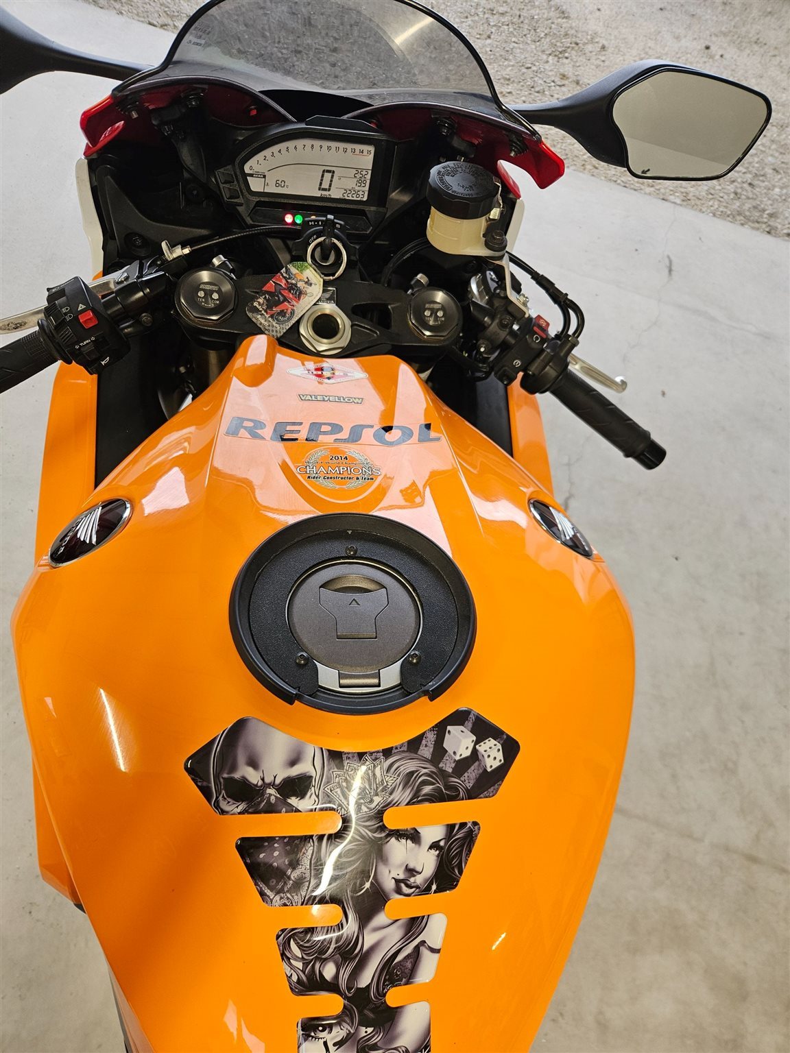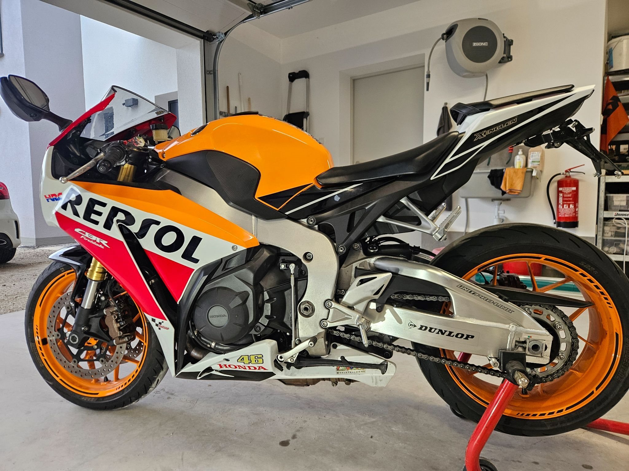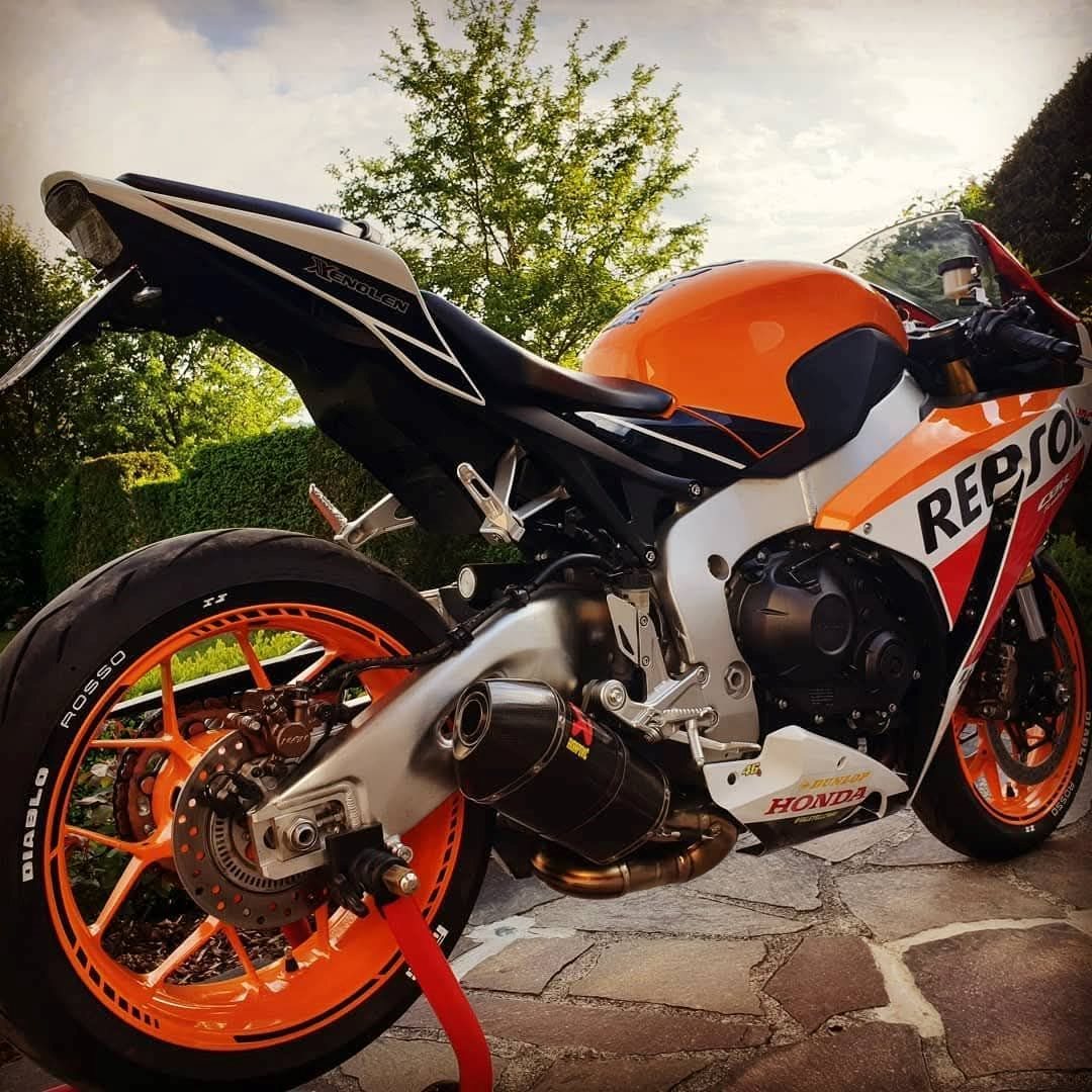 Verkaufe, aufgrund von Zeitmangel, eine sehr gepflegte und seltene Honda CBR 1000R SC59 *Repsol limited Edition*. Das servicegepflegte Motorrad wurde nie auf der Rennstrecke/Ring gefahren.Es handelt sich um ein absolutes Liebhaber und Garagenfahrzeug!!!Die Fireblade wurde mit einer Akrapovic-Auspuffanlage (inkl.herausnehmbarer DB-Killer), LED-Blinker hinten, einer kurzen Kennzeichenhalterung und Felgenbänder ausgestattet. Am Tank befindet sich ein Tankring für diverse GIVI Tankrucksäcke.