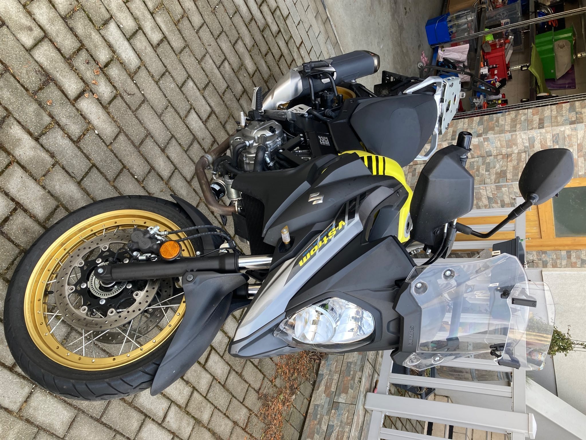 Verkaufe meine äußerst zuverlässige V-Strom. Unfall- & Umfallerfrei. Sie war immer in der Garage abgestellt und daher vor der Witterung geschützt. Kettensatz neu, Ölwechsel erst in 5500km wieder fällig. Habe ein zusätzliches Windschild, eine Halterung für Navi/Handy (12V Steckdose vorhanden).