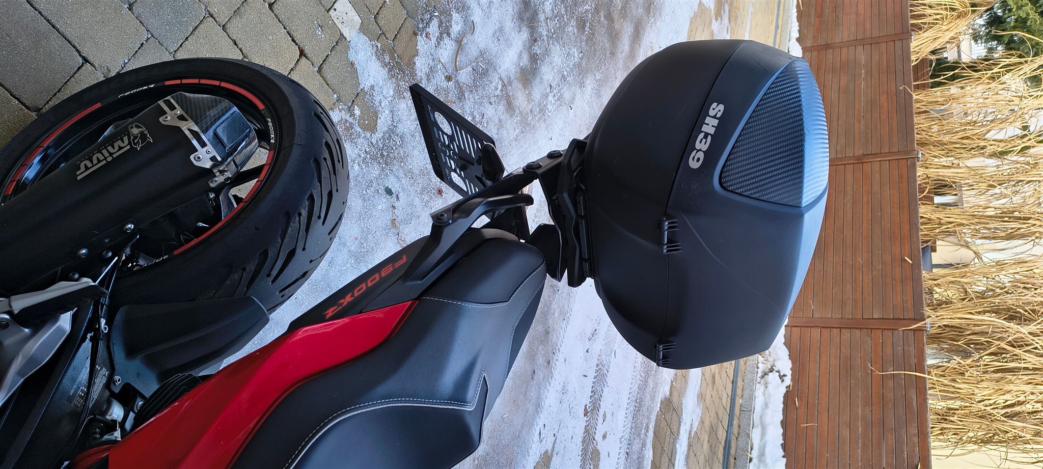Dabei ist natürlich der serienmäßige Auspuff und Sitzbank.