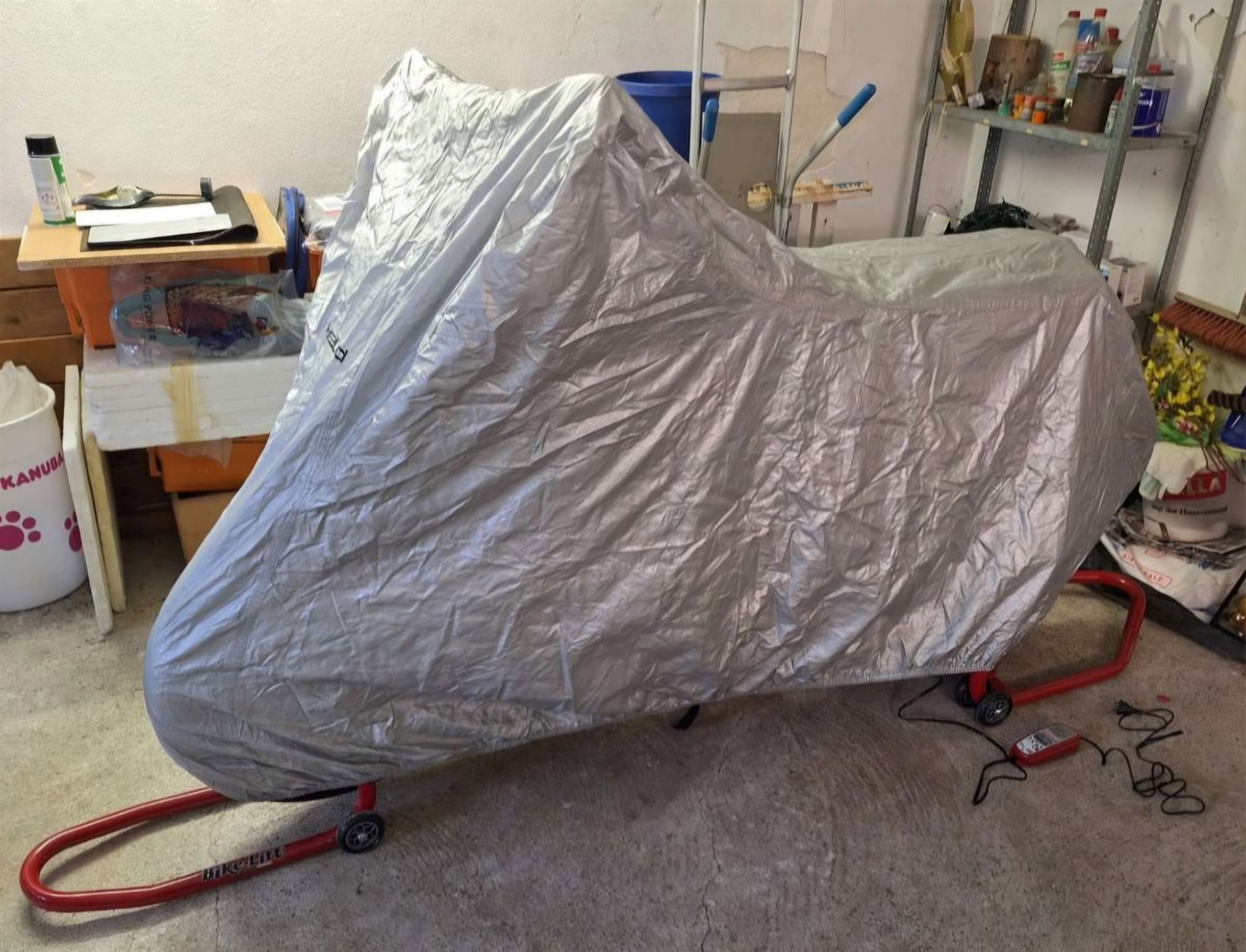 Motorrad Ständer für Vorder und Hinterrad sind vorhanden, ebenso wie ein Batterieladegerät!