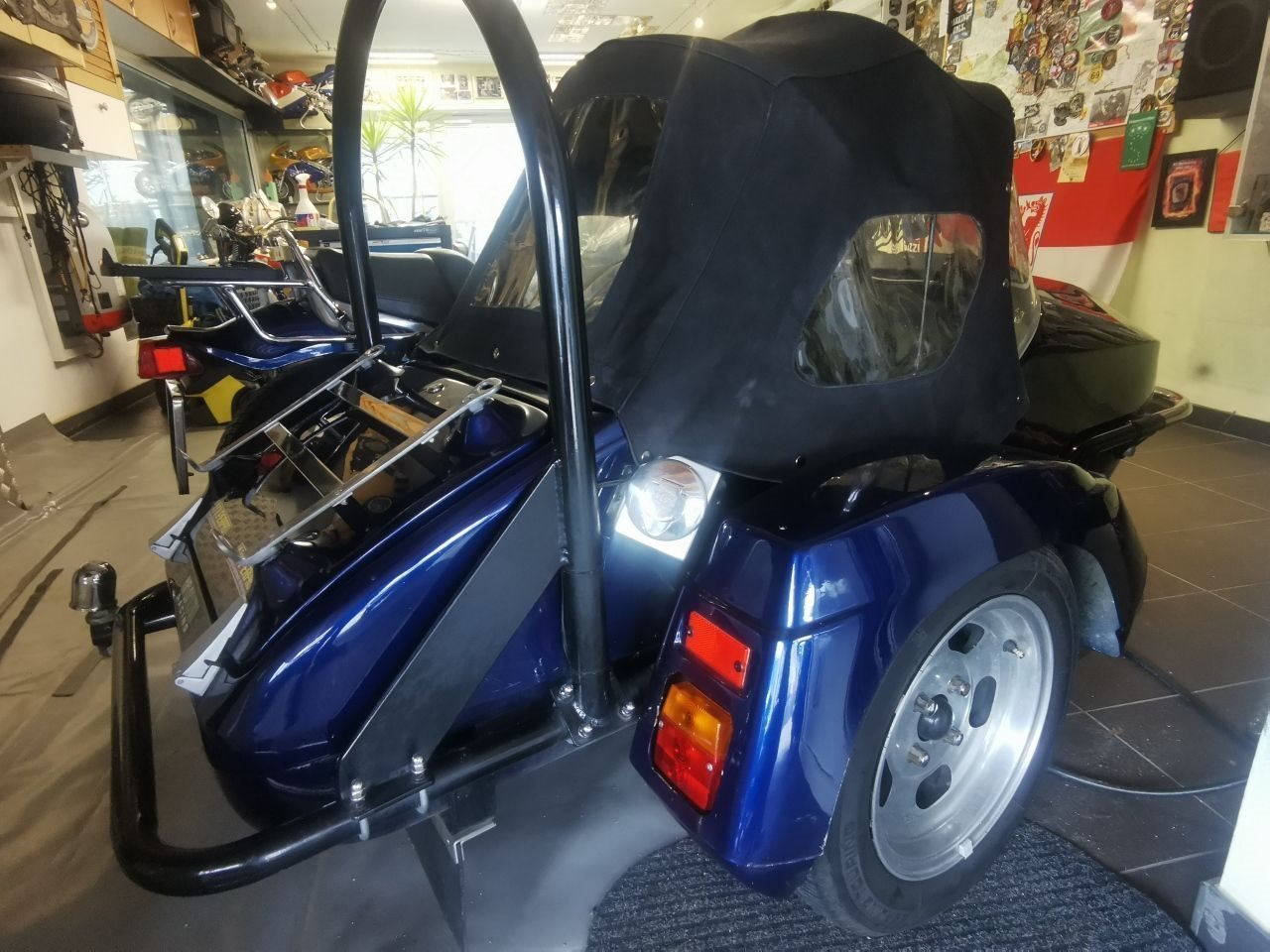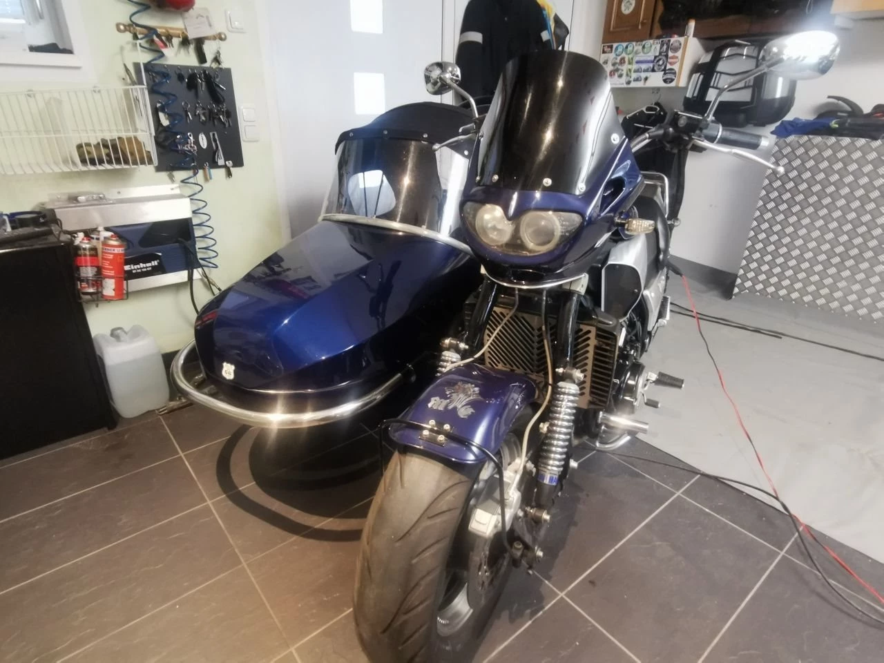 Weiter gibt es einen Zusatztank im Beiwagen, Reichweite gesamt ca. 400 km, je nach Fahrweise natürlich.