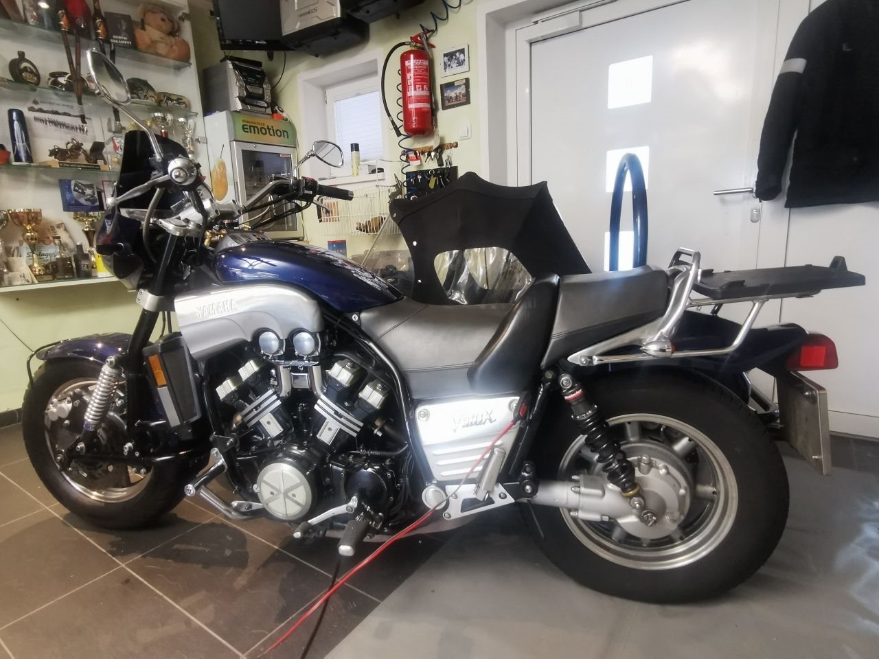 Diese V Max ist mit dem km Stand von 4000 und schon als Beiwagen in meinem Besitz gekommen, hatte aber für die Motorleistung zu schlechte Fahreigenschaften.