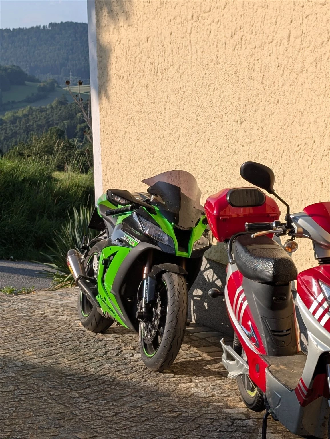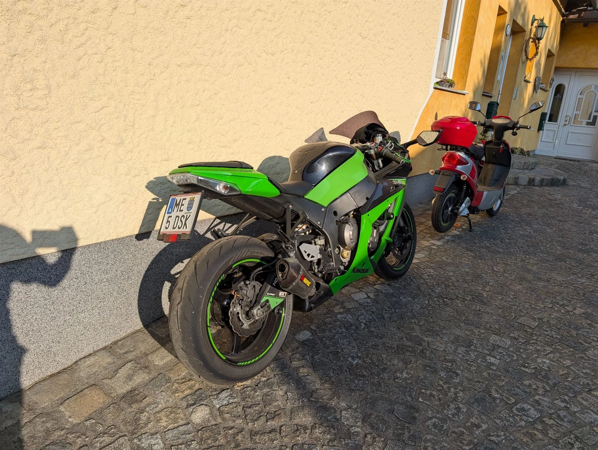 Zx10r Gen4, mit Akrapovic mit Kat (Blindrohr vorhanden), Sportluftfilter, 16 Ritzel (kürzer), großes Service und Pickerl neu, Reifen Diablo Rosso 4 80%, weil 200Ps noch zu wenig sind- Chiptuning Power Commander V ;)