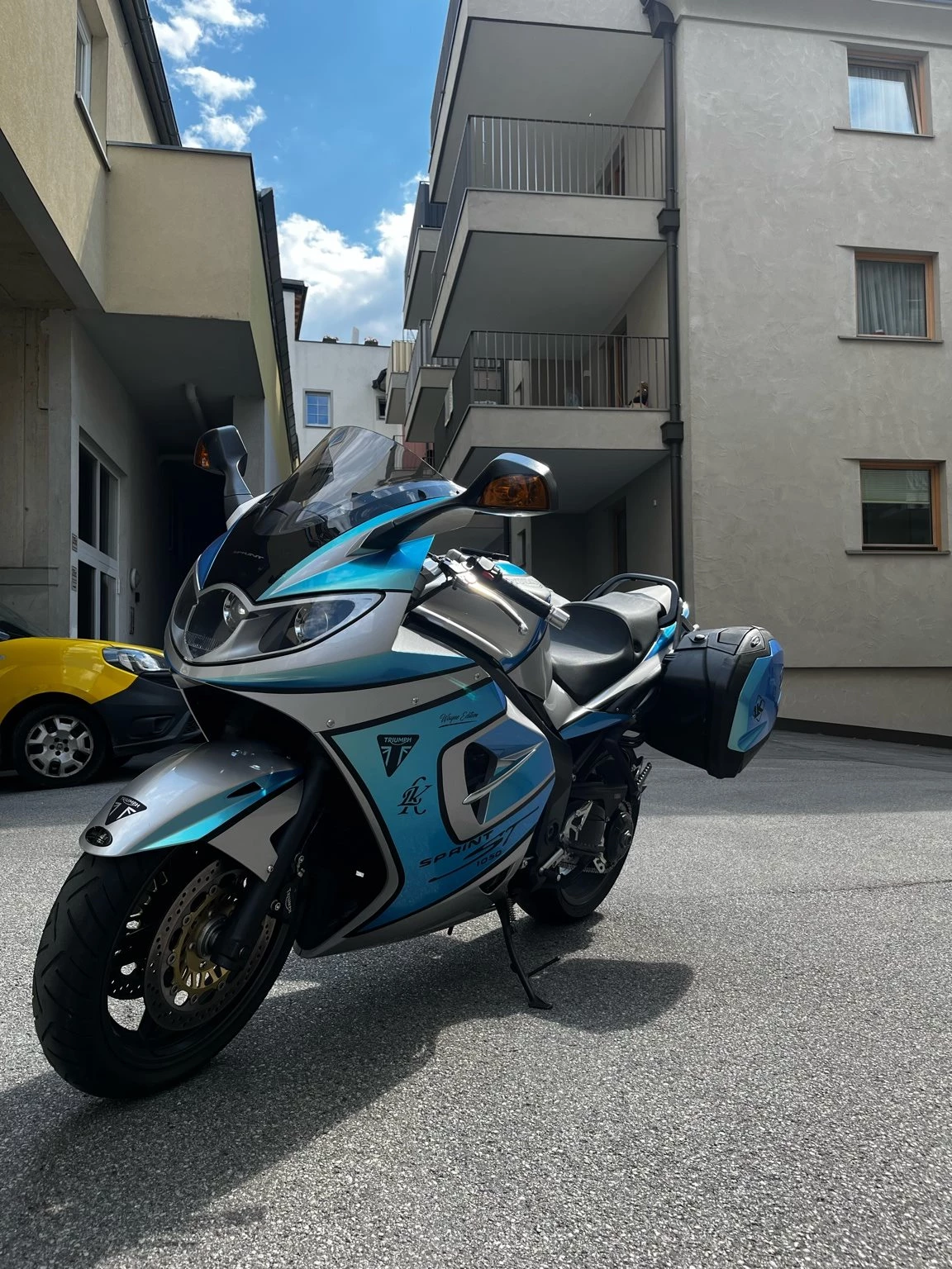 Topcase und Seitenkoffer inklusive.