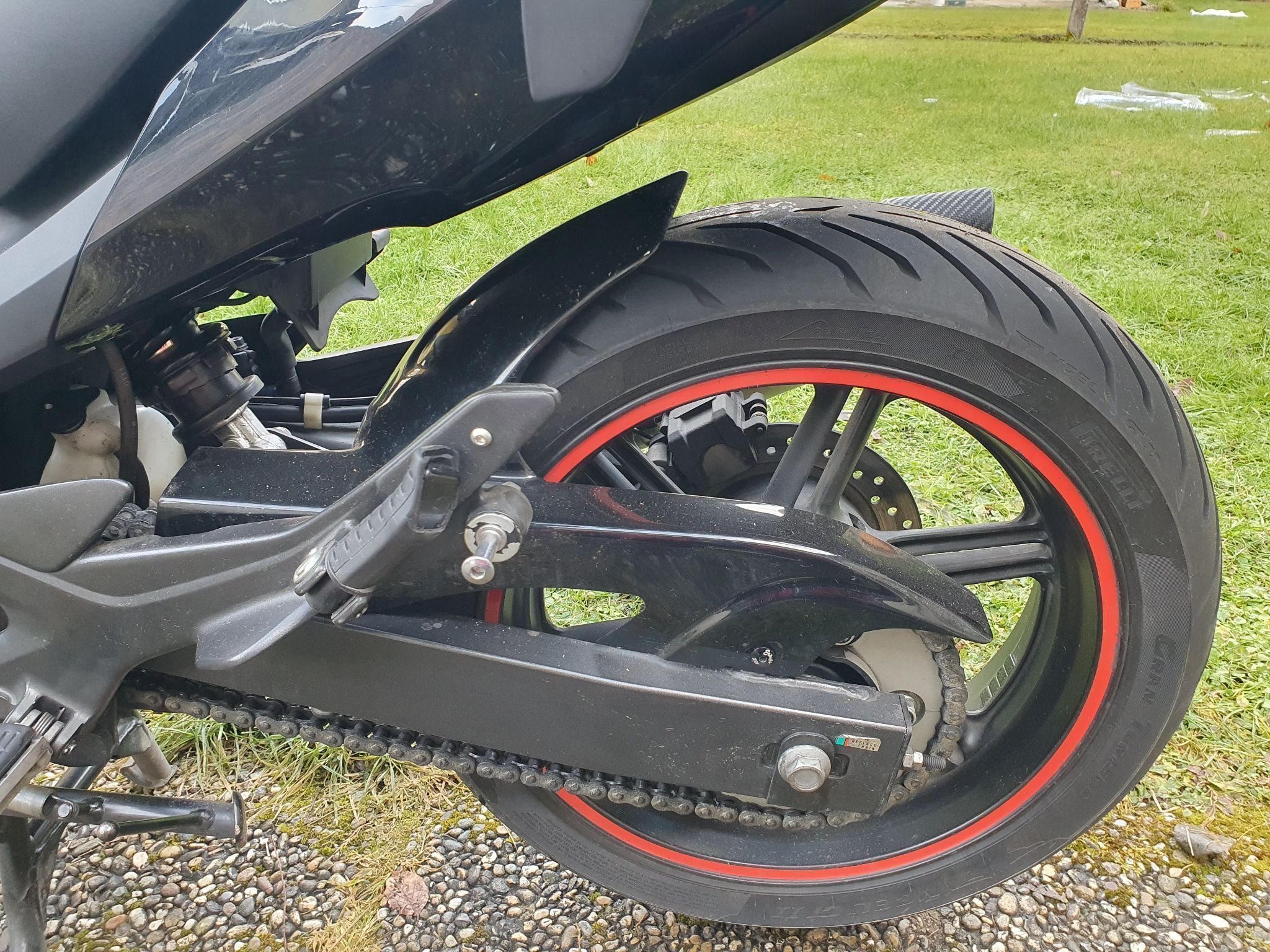 Vollverkleidung, Innnenkotflügel, Ganganzeige, rote Farbringe auf den Felgen, spezielles Tankpad, ABS, neue Reifen 2025, Sportauspuff (Original vorhanden), sparsamer Verbrauch, bequeme Sitzbank, lässiges Fahrgefühl.