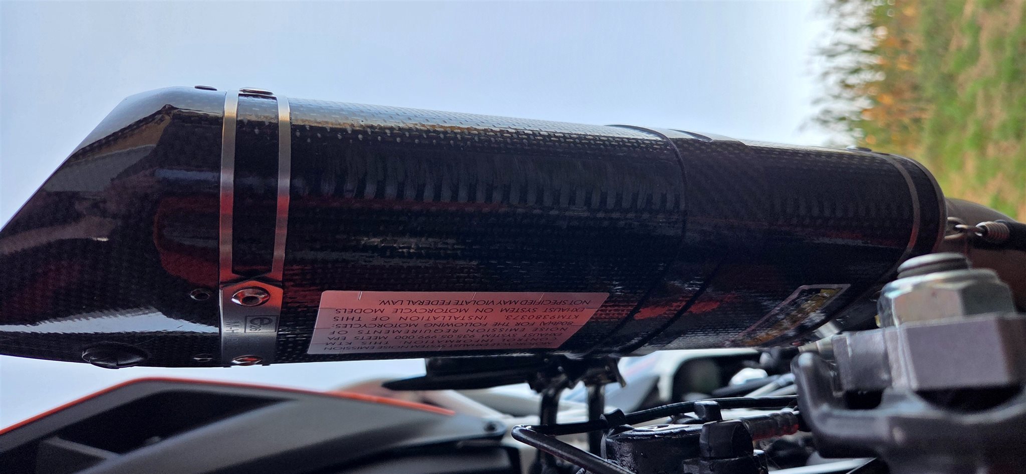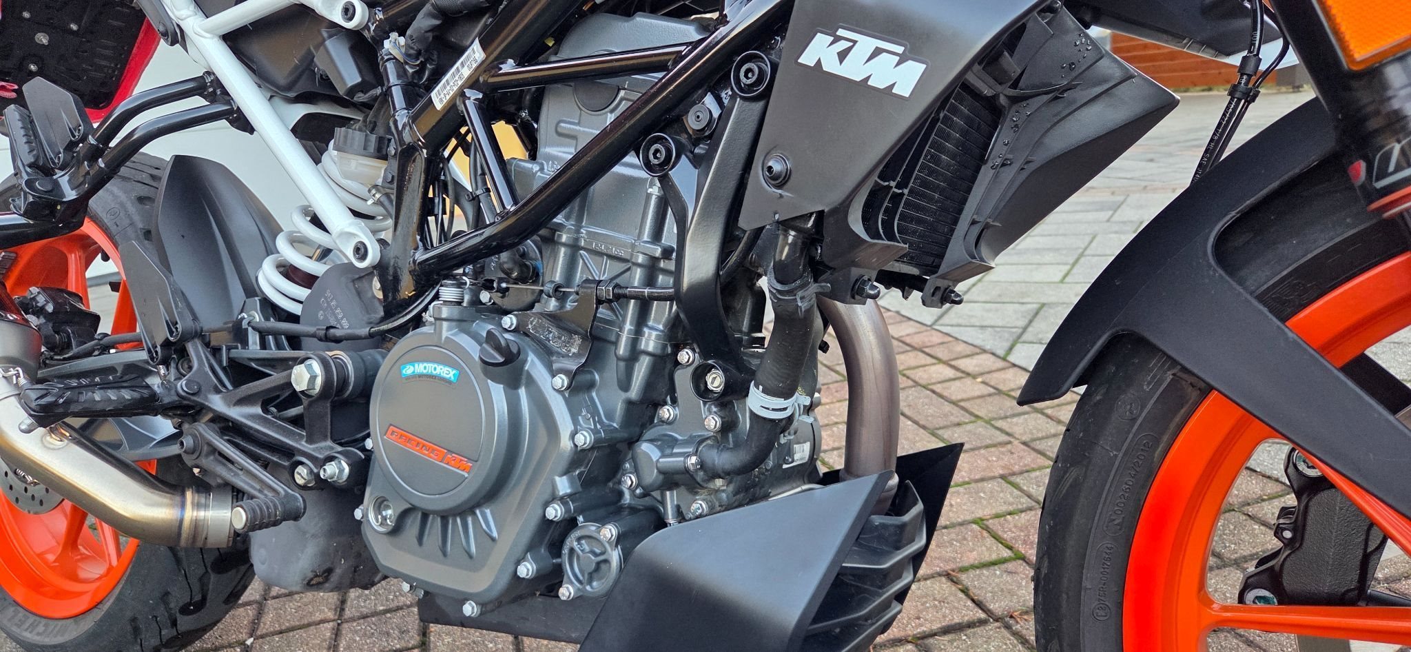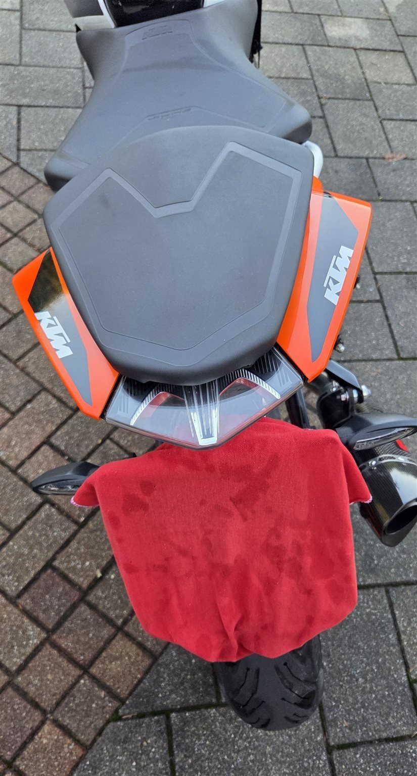 Alle Services wurden immer bei einem KTM-Händler durchgeführt. Mit dem Motorrad gab es keinen Unfall. Außerdem wurde stets auf das Motorrad geachtet und es bestmöglich gepflegt. Der Motor wurde immer ordnungsgemäß eingefahren und nie überlastet.