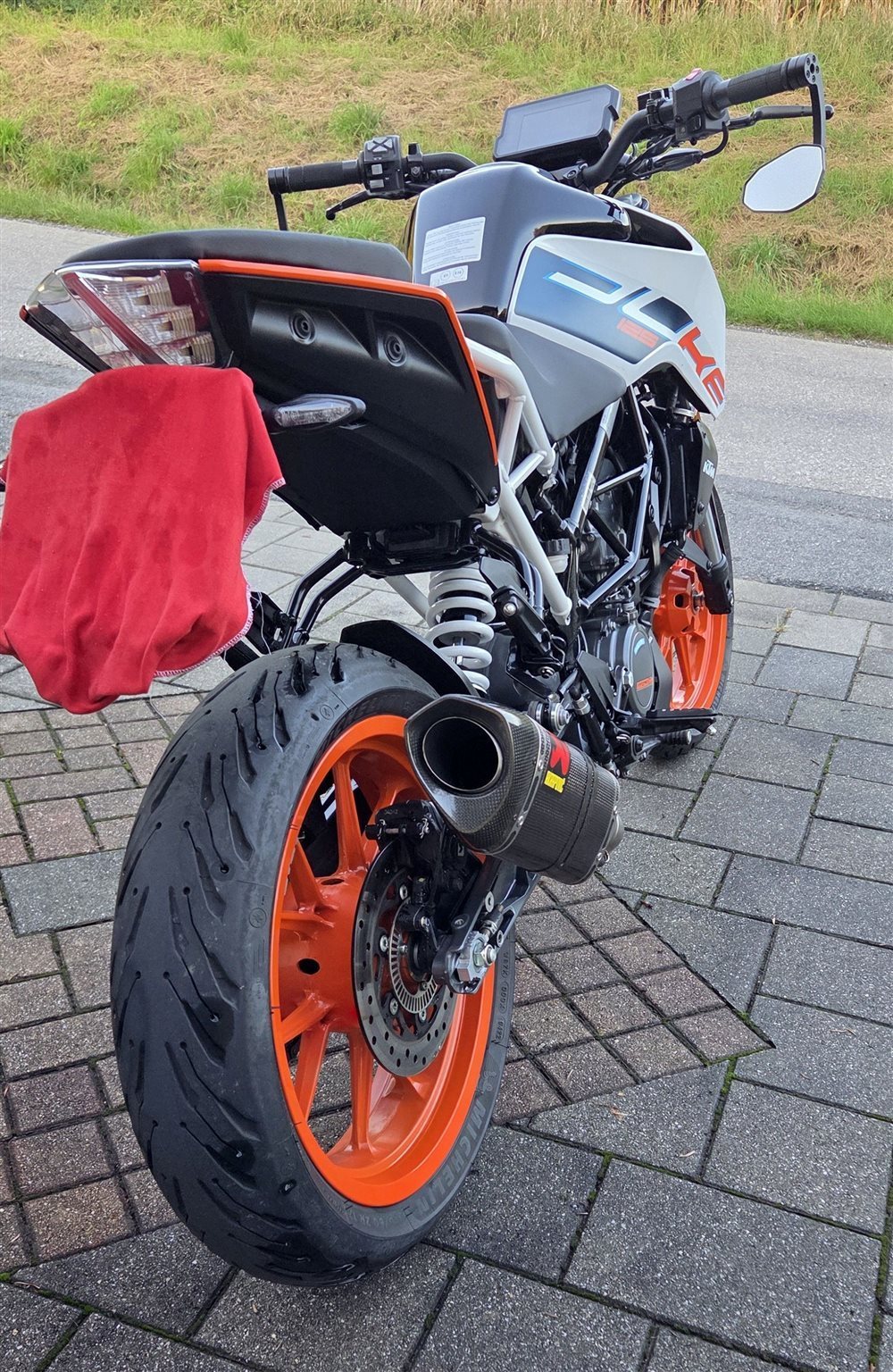 WICHTIG: Der Akrapovic Slip-On Auspuff (Baujahr 2024) ist im Preis enthalten. Die Lenkerendenspiegel sind nicht zu kaufen, dafür sind die originalen Spiegel noch vorhanden und ebenfalls in Top-Zustand.