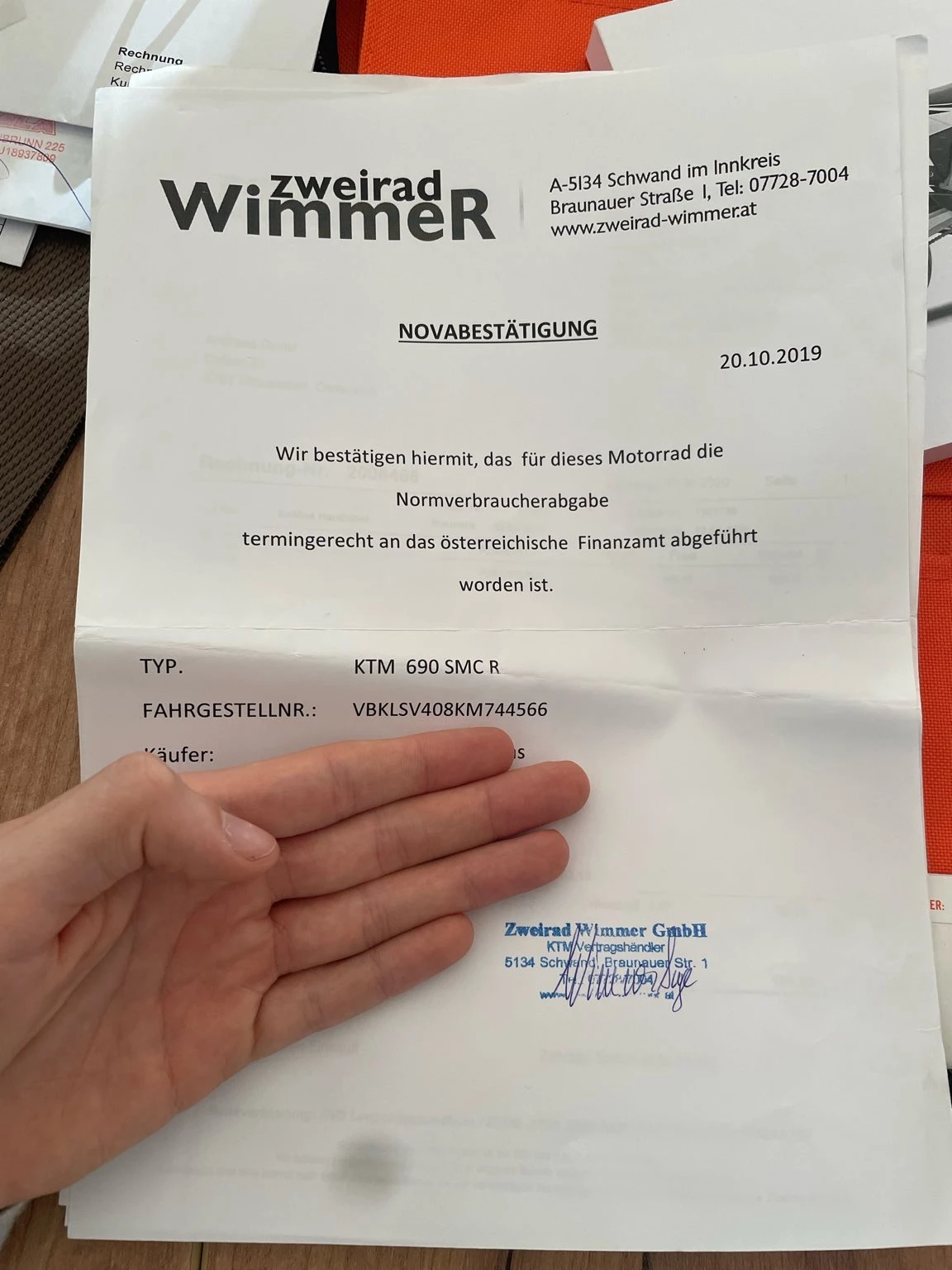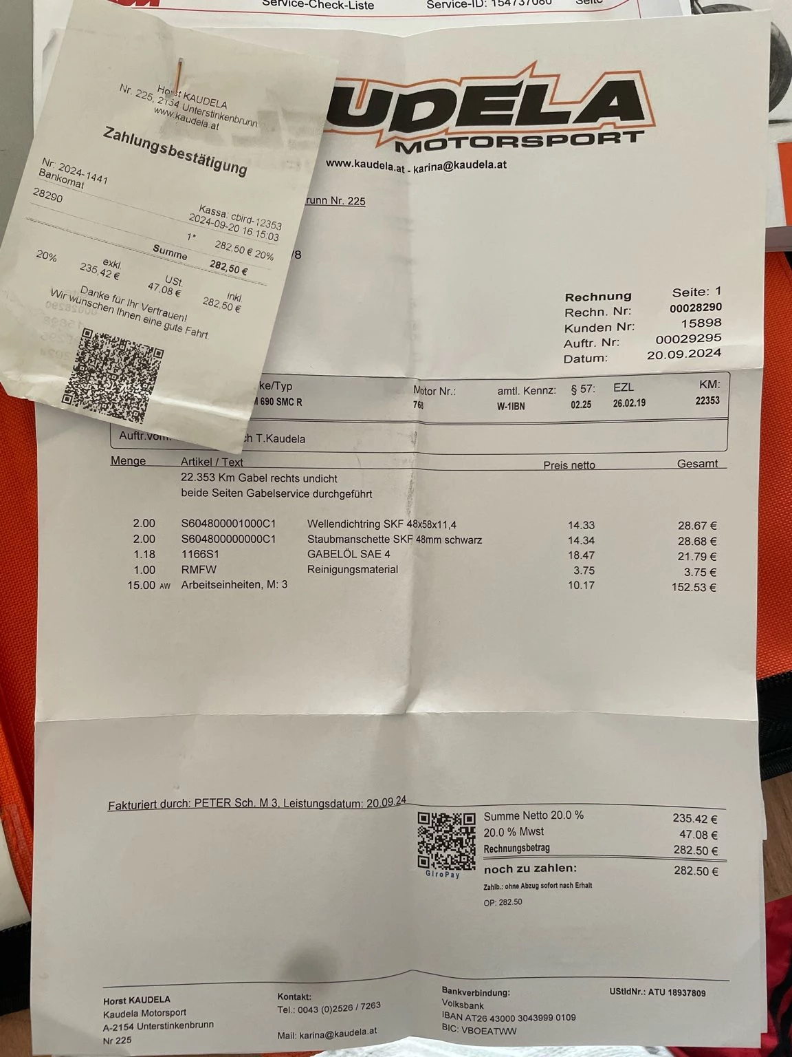 Änderungen : Powerpad Sitzbank mit Rechnung, Dekor in Neon Orange, Sportauspuff von Mivv mit Katalistator ( mit Papiere und E-Nummer) wurde bei Louis gekauft.