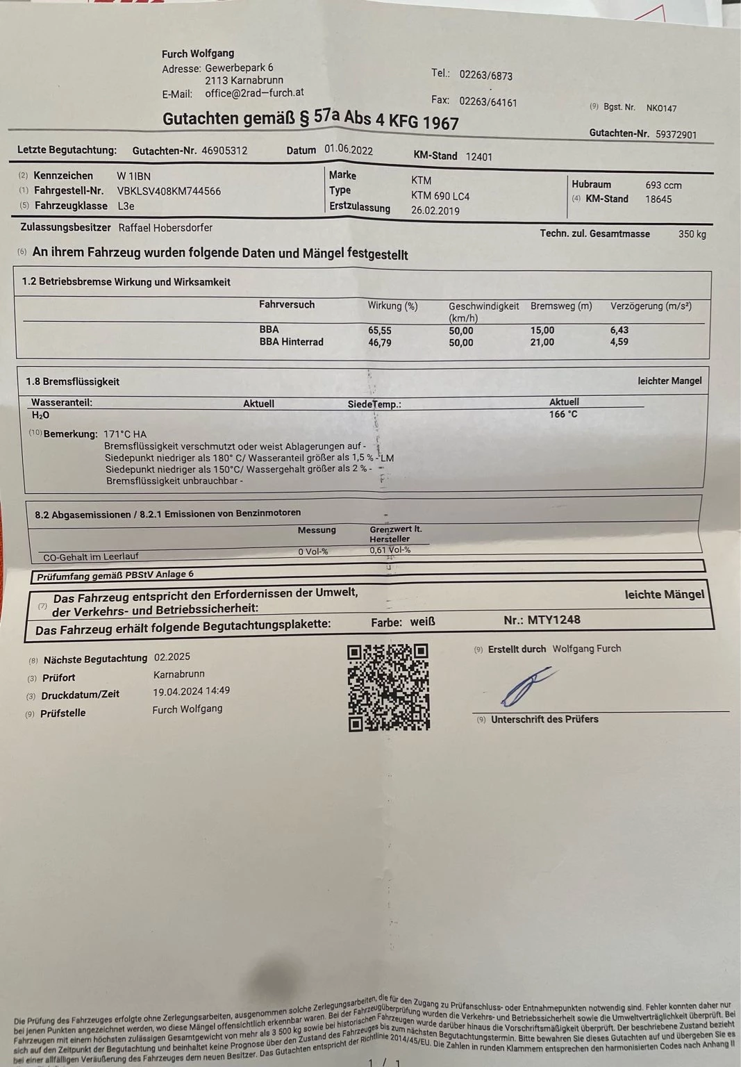 Pickerlbericht von vorigem Jahr ( siehe Bild ) , Pickerl ist fällig am 02.2026 und kann je nach absprache gerne gemacht werden.