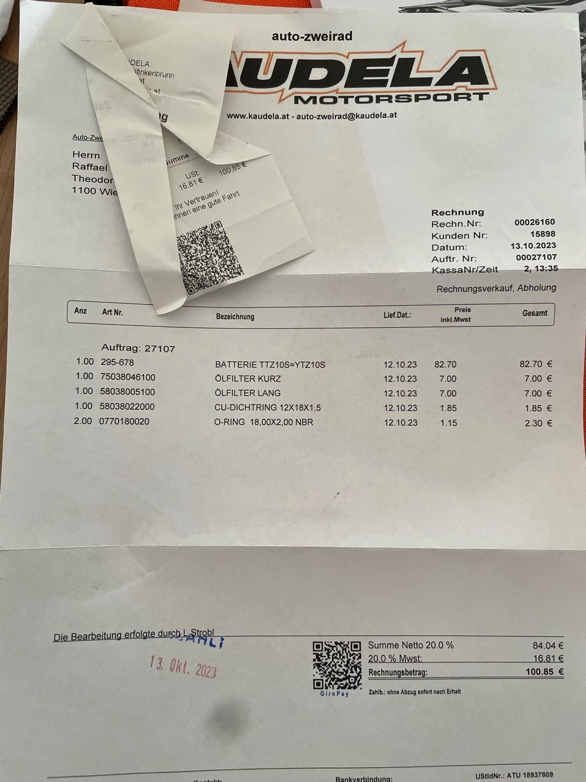 Es wurde voriges Jahr die Ventile eingestellt sowie ein Kabelservice von einer Fachwerkstätte durchgeführt, und eine neue Batterie wurde verbaut.