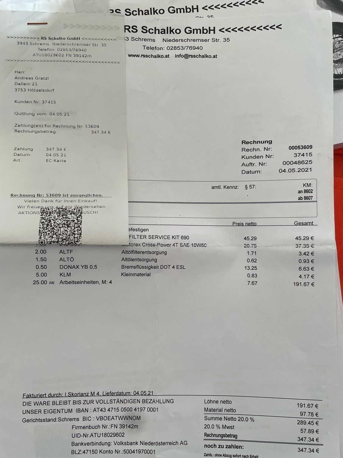 Ölservice wurde ebenso vor 200km selber gemacht.