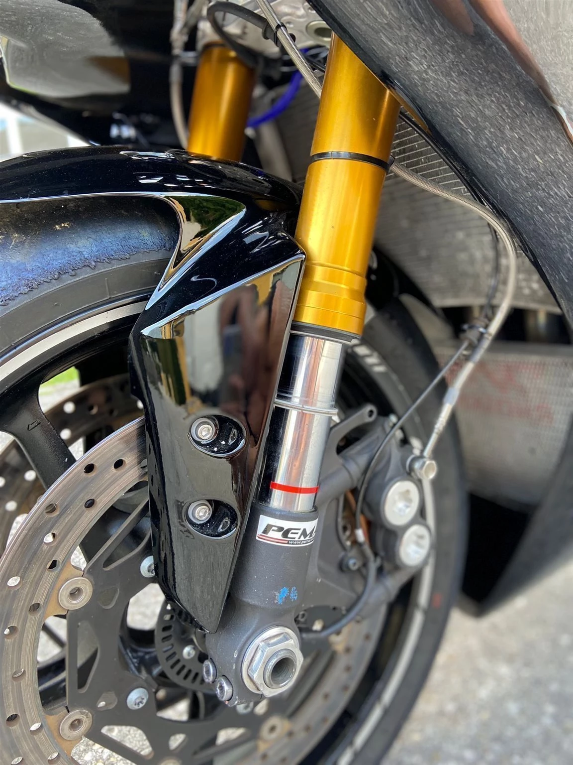 - Öhlins Fahrwerk (weichere Feder hinten als Ersatz inkludiert) - immer von Pema serviciert