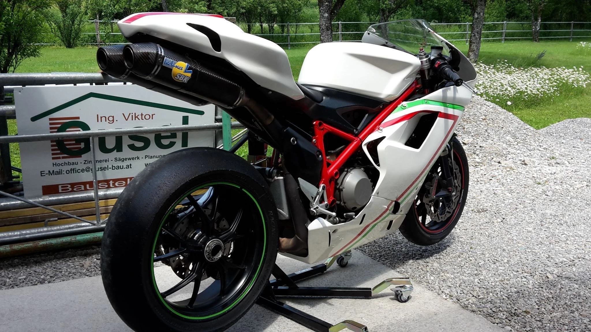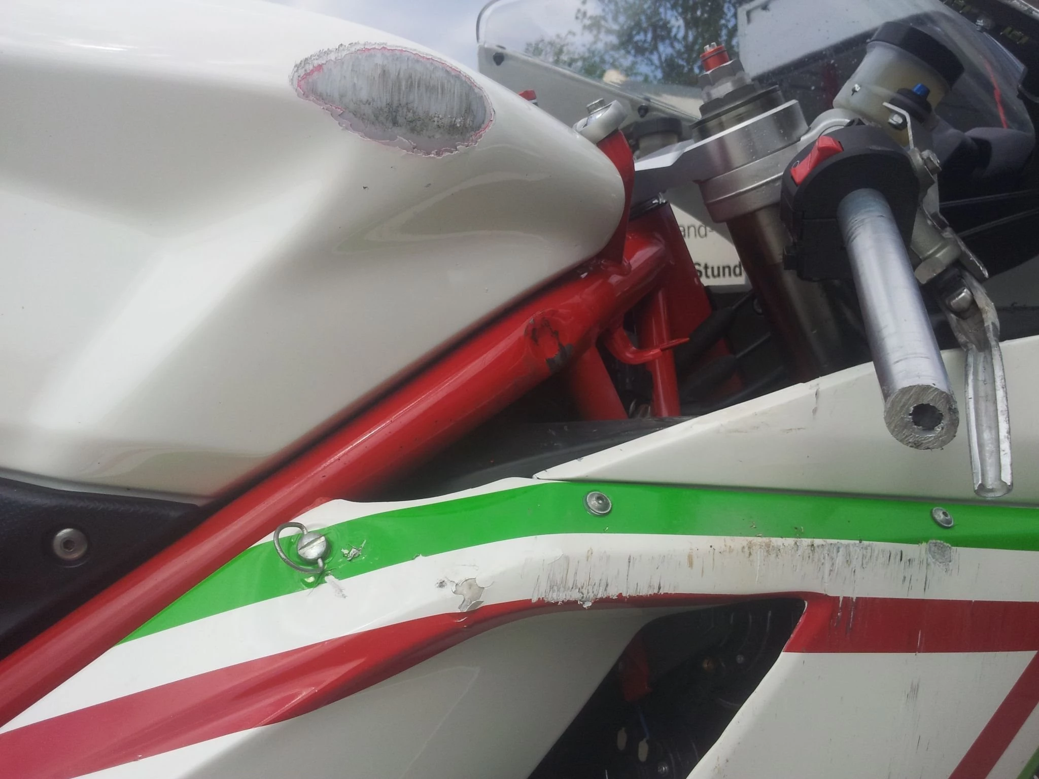 Die Ducati hat einen leichten Schaden durch einen Sturz am Rahmen. (Siehe letztes Foto)