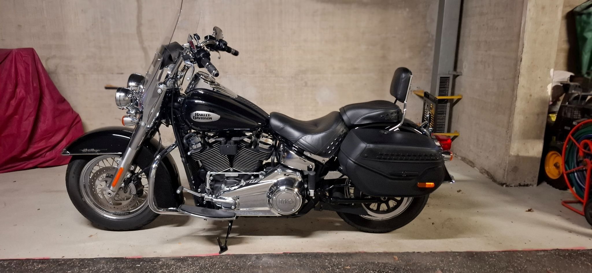 Verkaufe HD Softail Heritage 114, Vived-Black-Chrom, 1. Besitz, Garagenfahrzeug, ca: 7000Km, Sturzbügel, Schaltwippe, Sozius Rückenlehne, Griffheizung, Hohes Windshield (original vorhanden), Alarmanlage, Jekill & Hyde Auspuff (original Auspuff vorhanden), Serviceheft.