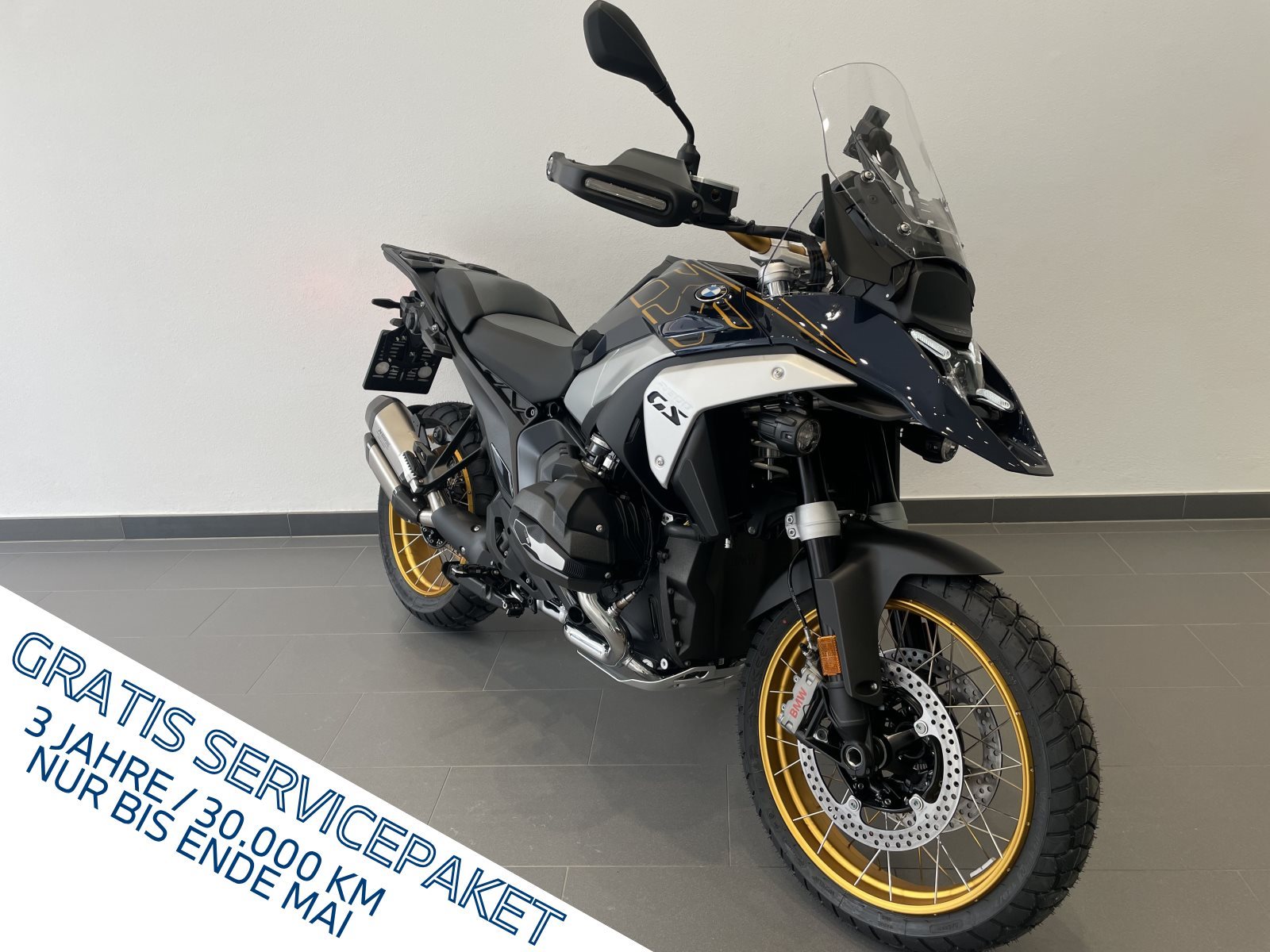 Bei Kaufvertrag und Fahrzeugabholung bis Ende Mai 2026 schenken wir Ihnen 3 Jahre Gewä,hrleistung 3 Jahre / 30.000 im Servicepaket 5 Jahre Roadside Assistance und Mobilitä,tsservices Jetzt schnell sein und von der GS Premium Kampagne fü,r alle neuen BMW F 900 GS, F 900 GS Adventure, R 1300 GS und R 1300 GS Bikes profitieren. Sonderausstattungen ab Werk:, , - 0233 Touring-Paket, , - 0272 Vorbereitung für Navigationsgerät, , - 0340 Krümmer verchromt, , - 0417 Zentralverriegelung, , - 058A Handschutzerweiterung, , - 0681 Kofferhalter links/rechts, , - 0235 Dynamic-Paket, , - 020B DSA, , - 0224 Fahrmodi Pro, , - 022A ASA, , - 02NA Sportbremse, , - 023B Innovationspaket, , - 0219 Headlight Pro, , - 05AG Adaptive Lichtmodi, , - 05AR Heckkollisionswarnung, , - 05AS Riding Assistant, , - 079X Option 719, , - 0413 Soziuspaket, , - 0559 Windschild elektr.verstellbar, , - 0636 Hauptständer, , - 077E Komfortfahrersitz hoch, , - 077K Kreuzspeichenräder gold, , - 079H Option 719 Frästeile-Paket Shadow, , - 019I Doppelschalldaempfer, , - 020D Adaptive Fahrzeughöhenregelung, , - 0380 Betriebsanleitung Deutsch, , - 0518 Sitzheizung, , - 0562 Zusatzscheinwerfer, , - 0603 Diebstahlwarnanlage, , - 0690 Topcasehalter, , - 06AC Intelligenter Notruf, , - 06AE Teleservices, , - 07A6 Verl.Mängelbeseitigungsansprüche +1 Jahr, , , , . 3 Jahre Gewährleistung, , . 3 Jahre / 30.000 km Servicepaket, , . 5 Jahre Roadside Assistance und Mobilitätsservices, , . Attraktive Premium-Finanzierung, Irrtümer und Zwischenverkauf vorbehalten