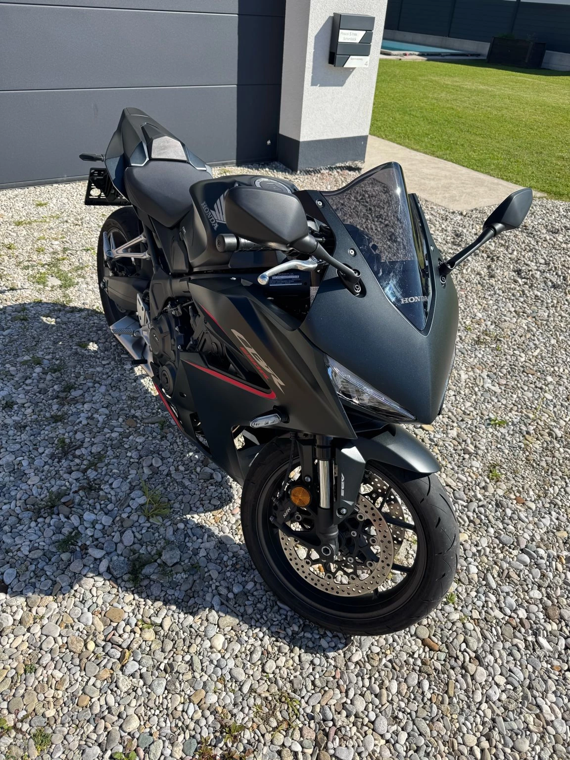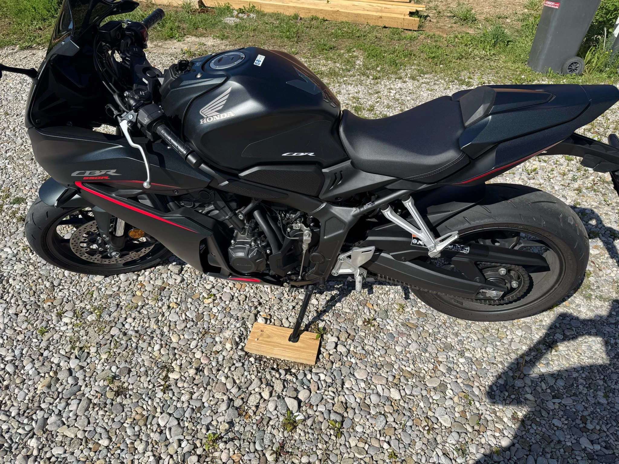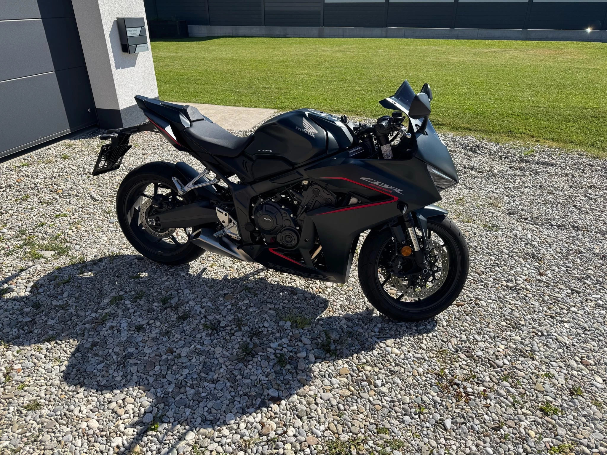 Verkaufe meine Honda CBR 650 R in Schwarzmatt.\\\\Neupreis war 11.290€ (10.790€ + Racingpaket 500€)\\\\Im Racingpaket ist ein schwarzes Windschild + Sozius + Rot/Metallic Ölmessstab + 3 Pads am Tank & Quickshifter enthalten.\\\\Alle Originalteile sind ebenfalls noch vorhanden.\\\\Das Motorrad ist noch in einem werksneuen Zustand! Ist immer in der Garage gestanden und wurde nie im Regen gefahren.\\\\Momentan hat das Bike ca. 1740 Km und wird aktuell noch bewegt.\\Erster Service wurde bei 1300 km beim Honda Händler gemacht.\\Alle Rechnungen sind natürlich auch vorhanden.\\\\Kurze Kennzeichenhalterung wurde gekauft, aber nicht montiert, kann beim Verhandeln mitgegeben werden. Neupreis 138€. Rechnung vorhanden.\\\\Erstes Pickerl ist im 05/27 fällig.\\\\Bei weiteren Fragen, einfach melden.