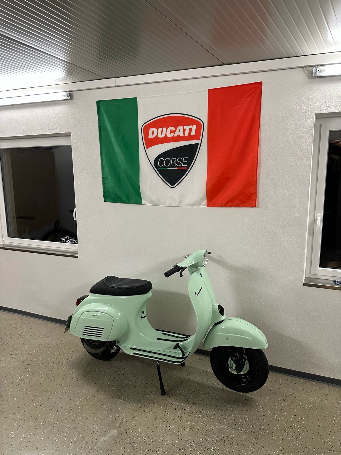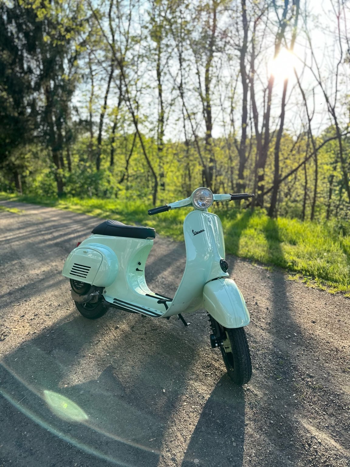 Neu Lackiert in 399 Verde original Vespa Grün und alle anderen Akzente wurden schwarz gemacht.