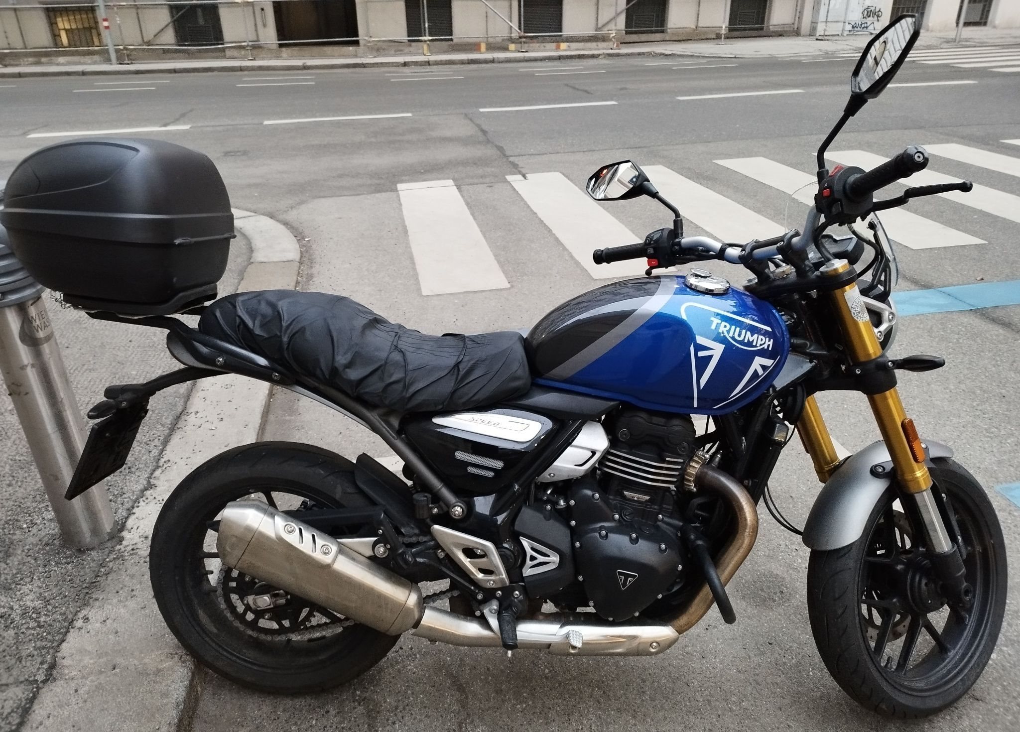 Sturz und unfallfrei, Triumpftopcase + Träger, Sturzrahmen, wartungsfreie DID X Antriebsatz, Windschild original dazuverbaut,Komfortsitzbank extra + Regenschutz, klassische Spiegel, original gibts dazu.Ist fahrbereit mit Pickerl, keinerlei Probleme, wegen Umstieg auf Tourenmaschine abzugeben.Maximalgeschwindigkeit lzt. Tacho 160kmh mit Windschild angenehme Tourengeschwindigkeit 130kmh, Fahrwerk und Vorderbremse ausgezeichnet, Reifen haben auch hohen Grip bei Nässe. Verkauf Ende Februar, wenn die Neue da ist.Servieheft vorhanden, Werksgarantie, sowie vorgeschriebenes 1.tes Service gemacht.FIXPREIS.