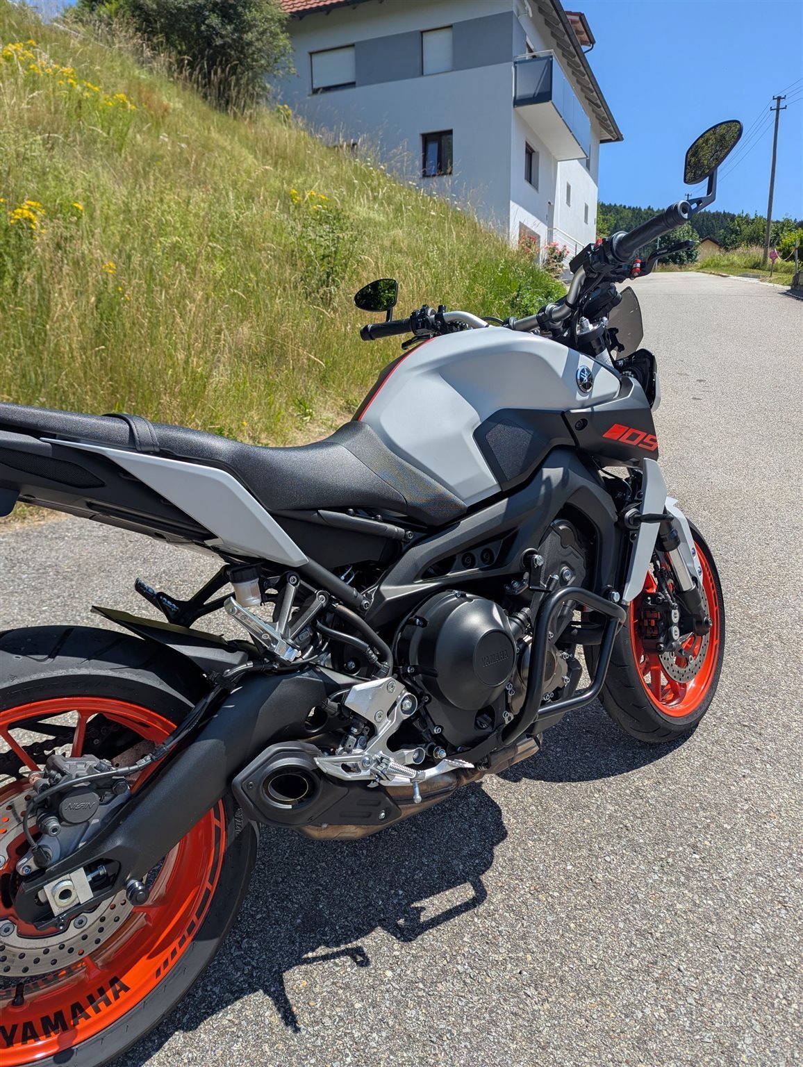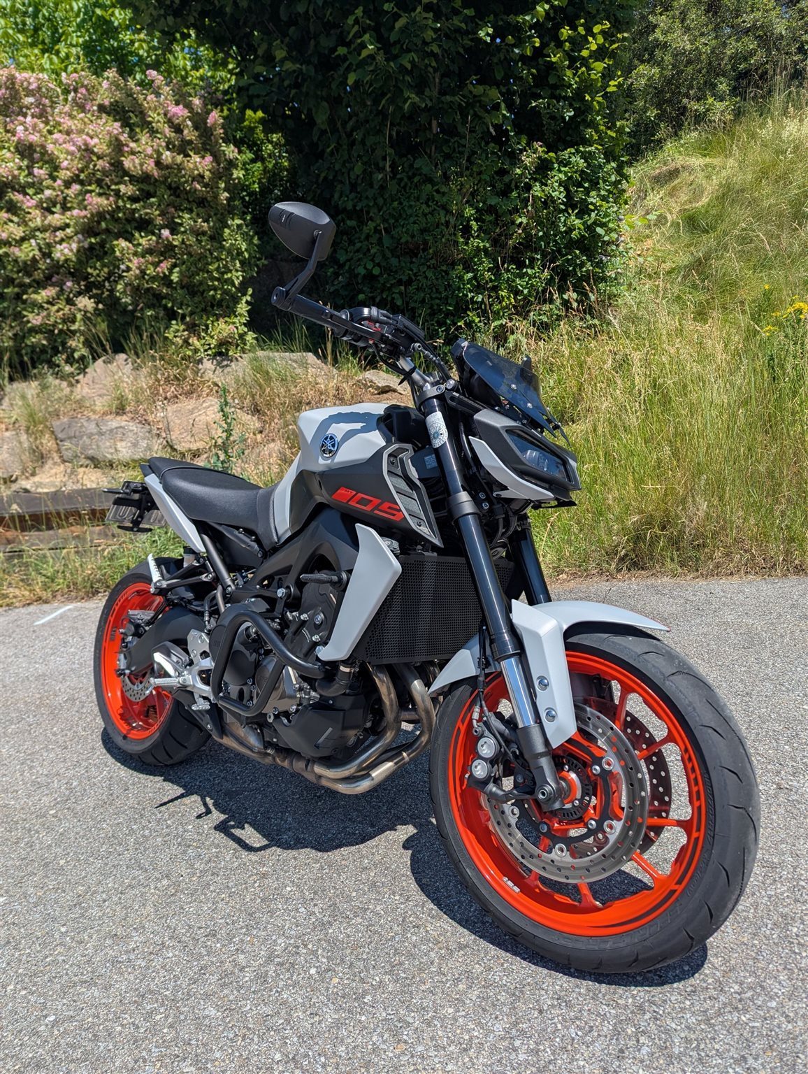 Verkaufe meine gut gepflegte Yamaha MT-09 da ich mir eine KTM 890 Adventure zugelegt habe. Wurde einmal im Stehen vom Vordermann beim Rückwärts fahren übersehen und ist einmal auf die linke Seite gefallen. Sturzbügel waren schon oben und wurden neu lackiert. Original Spiegel (noch vorhanden) wurden danach gegen Highsider Spiegel getauscht. Kotflügel war gebrochen und wurde durch einen Versicherungsschaden Original ausgetauscht. Folierung wurde selbst gemacht was man auch an manchen Stellen sehen kann, aber dadurch wurden die Bauteile darunter gut geschützt. Kann bei Bedarf natürlich entfernt werden.