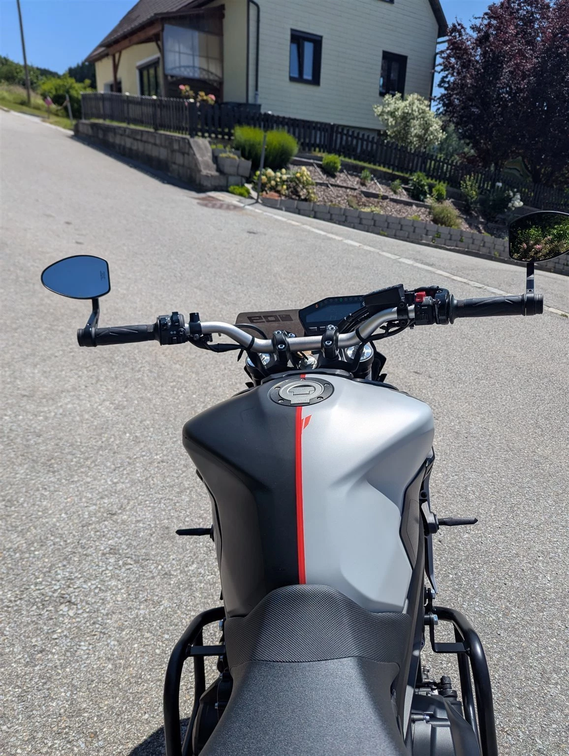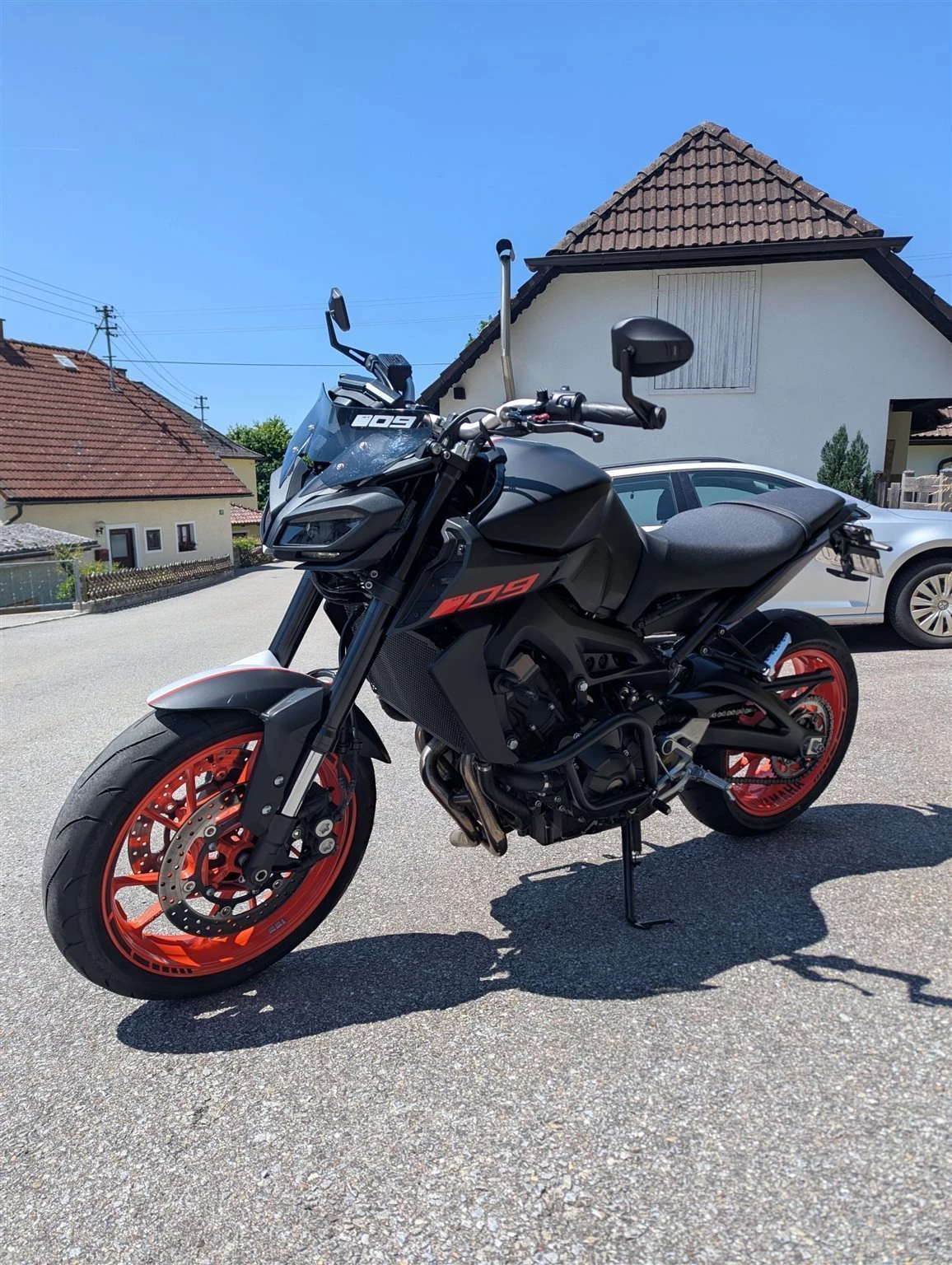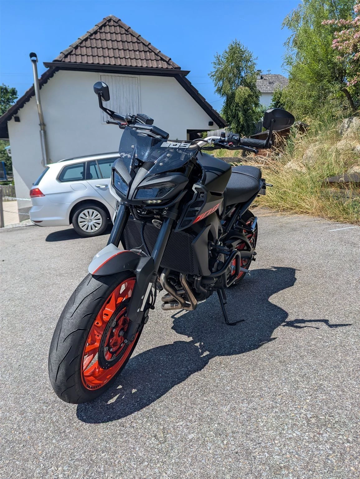 Verkaufe meine gut gepflegte Yamaha MT-09 da ich mir eine KTM 890 Adventure zugelegt habe. Wurde einmal im Stehen vom Vordermann beim Rückwärts fahren übersehen und ist einmal auf die linke Seite gefallen. Sturzbügel waren schon oben und wurden neu lackiert. Original Spiegel (noch vorhanden) wurden danach gegen Highsider Spiegel getauscht. Kotflügel war gebrochen und wurde durch einen Versicherungsschaden Original ausgetauscht. Folierung wurde selbst gemacht was man auch an manchen Stellen sehen kann, aber dadurch wurden die Bauteile darunter gut geschützt. Kann bei Bedarf natürlich entfernt werden.